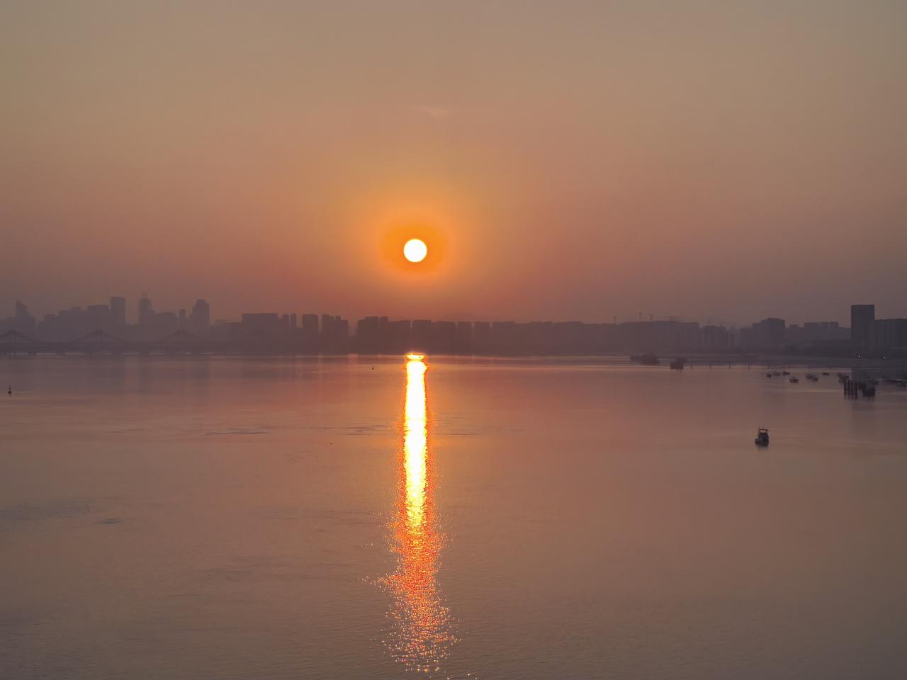 【七绝·与夕阳同醉】 我与夕阳同醉风, 霞光上脸倍常红。 凭栏尽览秋江阔, 心逐