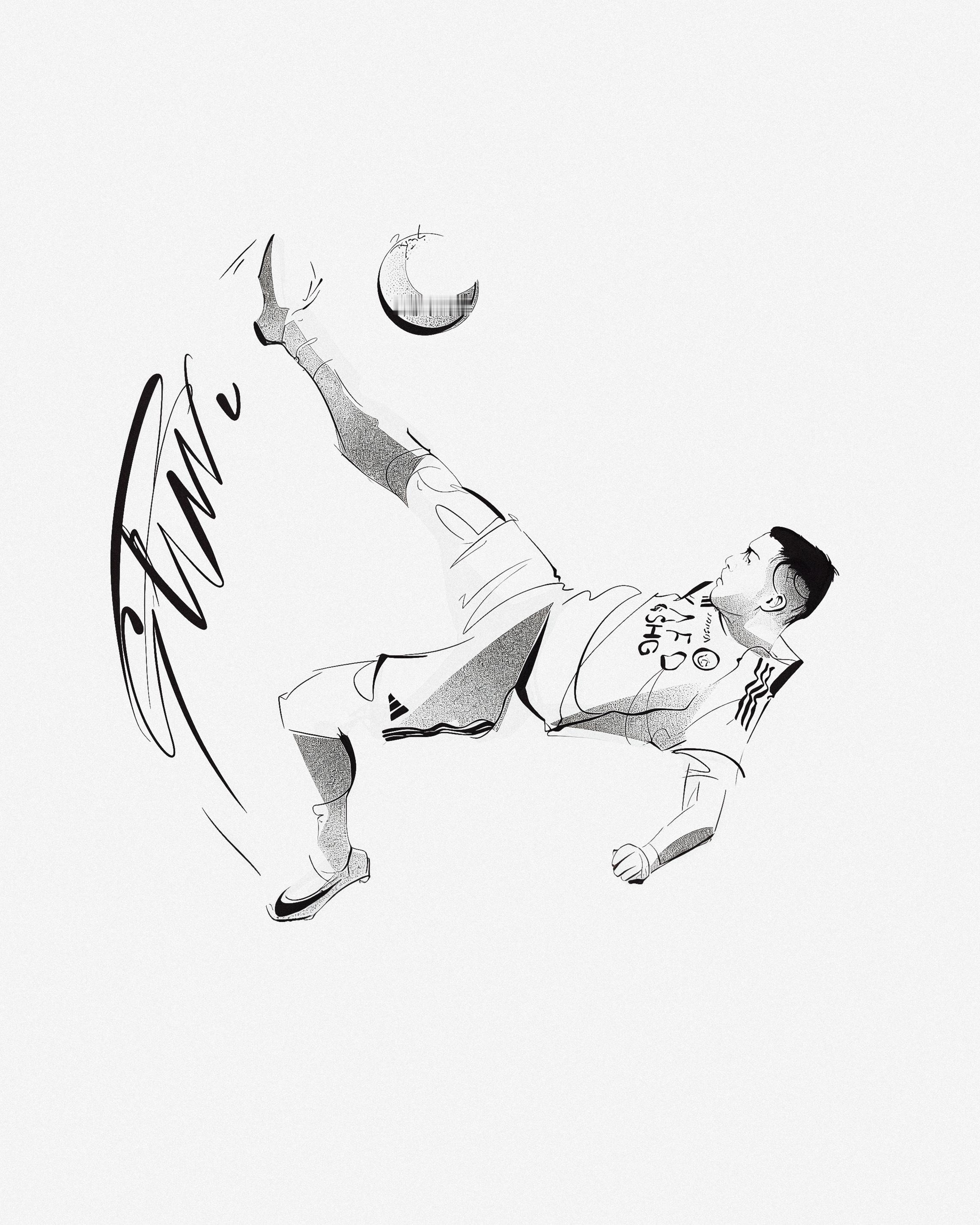 🛑利雅得胜利官方插画师又出手稿了,签名化作腿部上扬的运动轨迹,妙啊