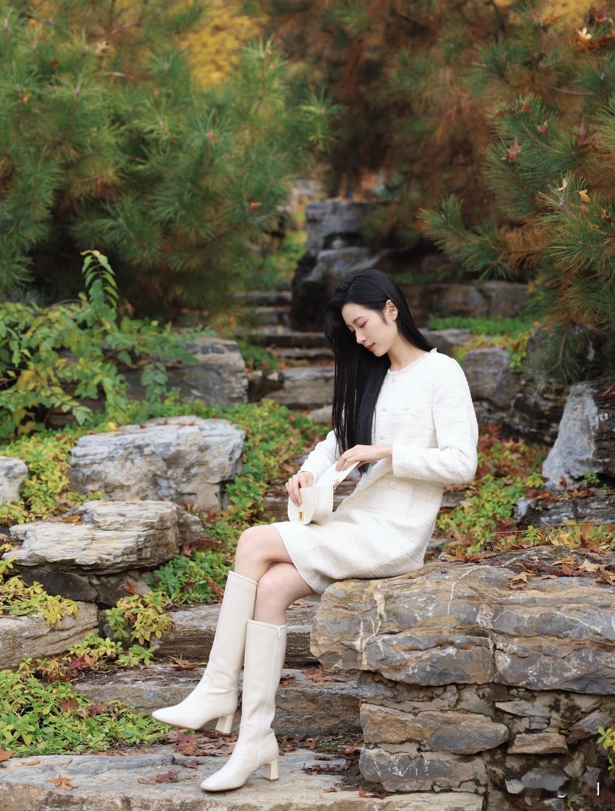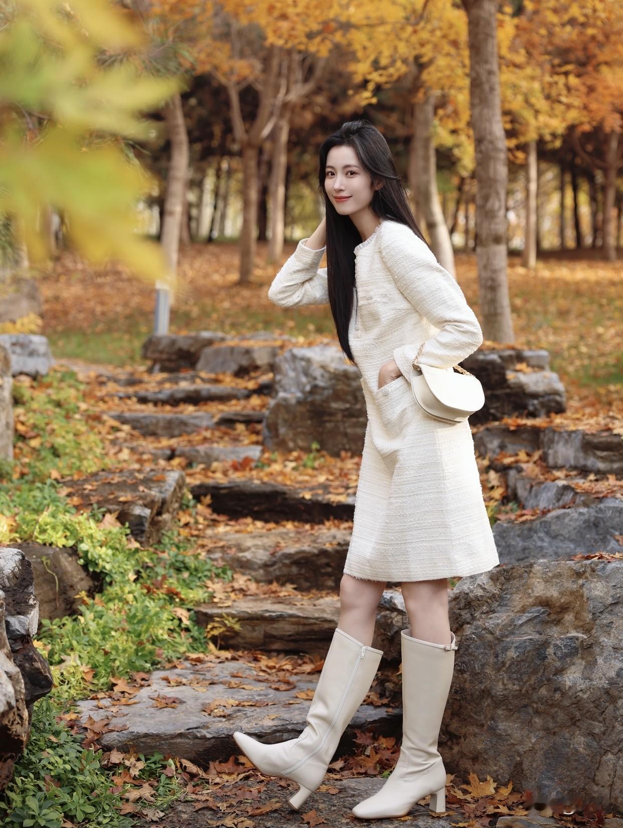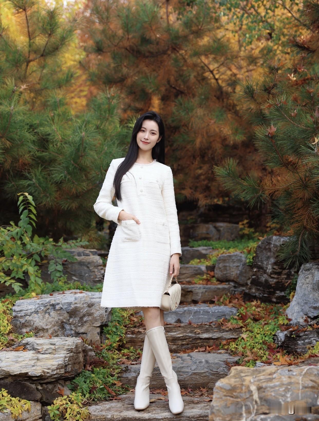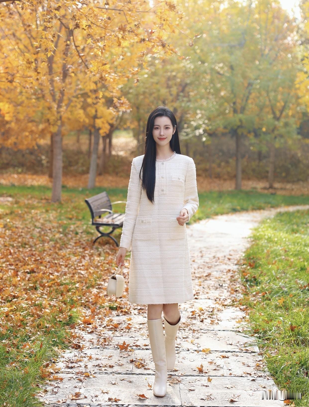 怎样穿搭让自己更优雅秋日漫步,优雅白裙与自然融为一体