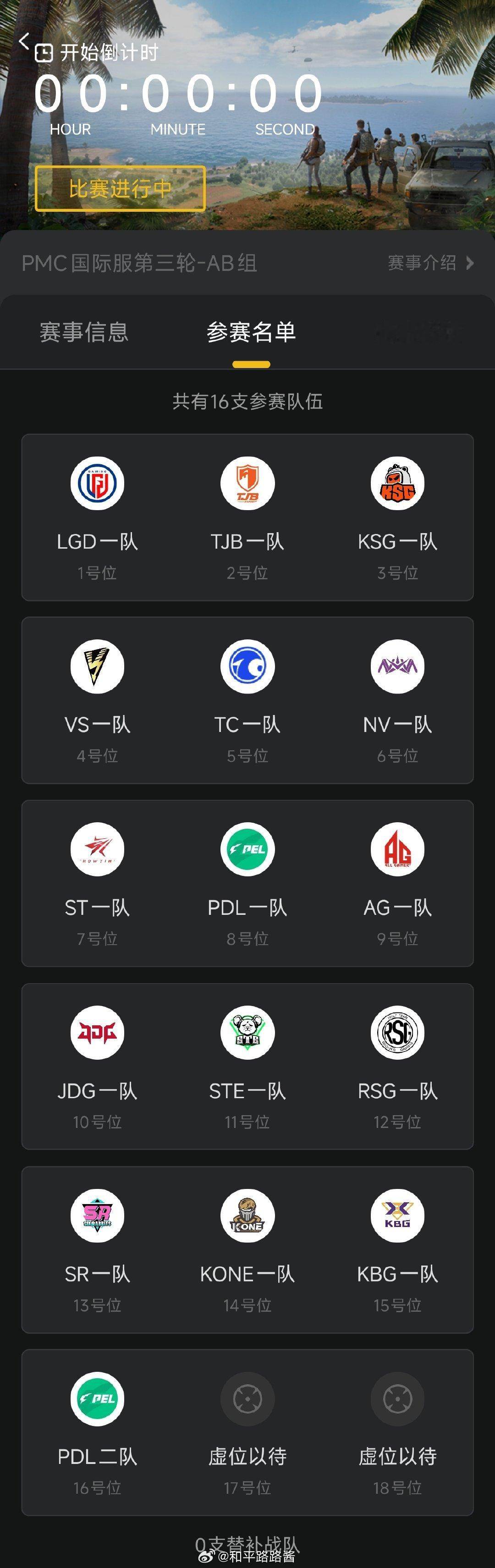 【11.24 国际服 PMC 第三轮 AB组】今日参加战队:LGD、TJB、KSG、VS、TC、NV、ST、PDL一队、AG、JDG、STE、RSG、SR、KONE、KBG、PDL二队