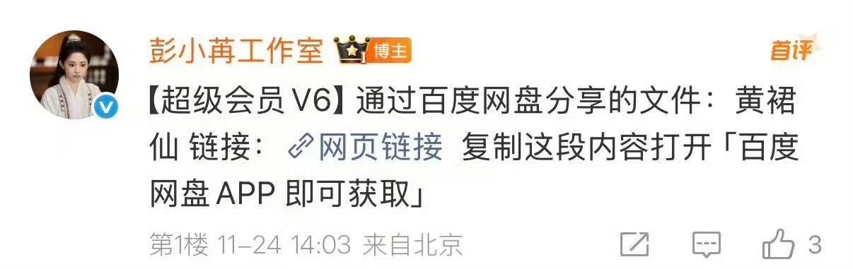 速来!彭小苒高清物料自由达成!工作室直接放网盘任取,高清无水印物料随便存,修图党狂喜,会放你就多放点,麻烦工作室按这个标准卷起来!