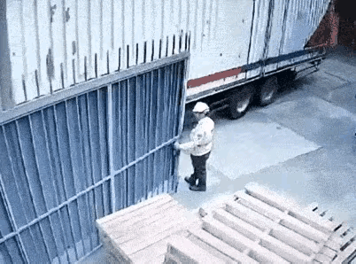 干活必须要有眼力,如果头不抬眼不睁的只顾干活,是很容易出事情的,画面中的这个人,一门心思开大门,并没有注意周围环境,结果大车开了过来,他也没有注意到,导致车厢碰到大门,把他也撞倒了,最后有惊无险,没有什么大事,这已经是万幸了!因此,干活一定要动脑筋,一定要眼观六路,耳听八方!