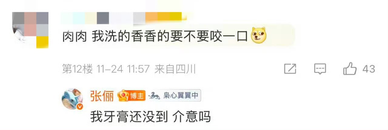 张俪真把梗王DNA刻进骨子里了吧!网友喊地枭boss来咬一口,姐居然一本正经回复 “牙膏还没到介意吗”,这分寸感拉满又自带笑点的反差谁懂啊!明明是让人又怕又爱的反派大佬,私下居然是这么可爱,林姨你这样我真的要垂直入坑了!