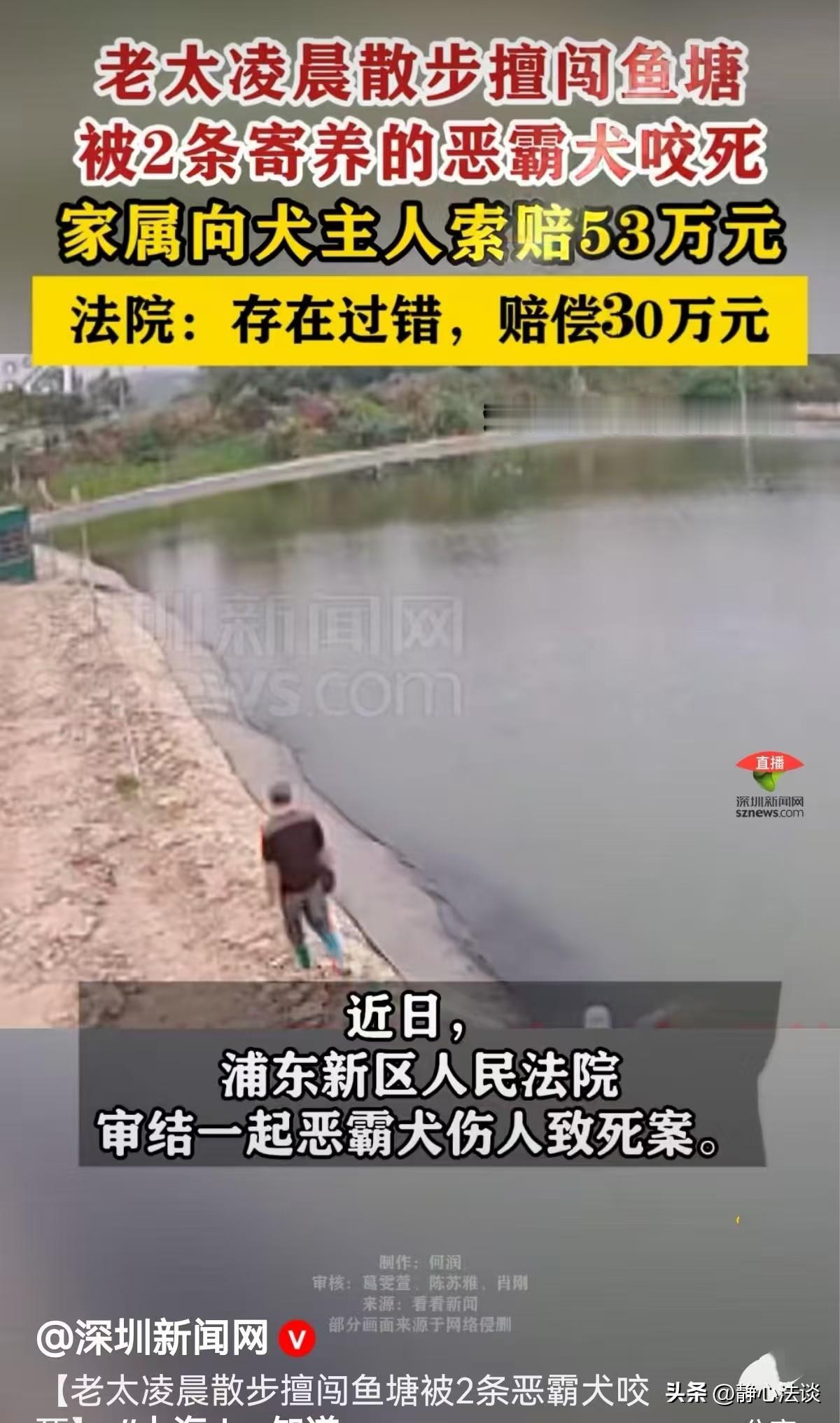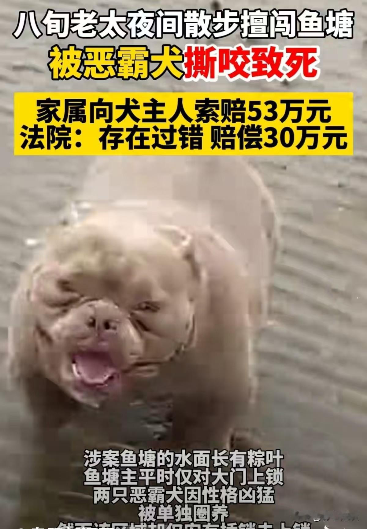 上海,父子俩承包鱼塘兼营宠物寄养,他们两次收寄了一男子的两条恶霸犬,因犬只性格凶猛被单独关在一区域。谁知凌晨,一老太出来散步,擅自进入鱼塘,惊动恶霸犬,两只恶霸犬冲出门将老太撕咬致死。父子无奈赔偿老太家属20万,而老太家属不满意,又将狗主人告上法庭,索要53万赔偿,父子被法院追加为被告,结果他们含泪长吁一口气! 老祁和儿子小祁承包了一处鱼塘,生活忙碌且平稳。 为了多份收入,爷俩洞察到宠物寄养这块是赚钱的机会,因为他们鱼塘地阔宽敞,有收寄的空间。 这个想法一实施,果然效益很好,很多是老客户,加上口碑长传,送寄的人很多。 申先生养了两只恶霸犬,这次是第二次送来寄养。 老祁已知这两只恶霸犬性情凶猛,便将它们单独关在最里面的一道门后的区域内。 这日清晨,小祁提着水桶想给鲤鱼投饵,再检查一下增氧机。 可当他走到鱼塘深处的犬只饲养区时,脚步猛地顿住,血液瞬间冲上头顶,手里的水桶“哐当”一声摔在地上。 两条被单独圈养的恶霸犬怎么出来了?它们正趴在地上,嘴角还挂着暗红的血迹,眼神里满是凶戾。 他下意识地四下张望,这一看把他魂都吓飞了。 不远处一位老人蜷缩着身子,满身血迹一动不动,身边散落着一个装着粽叶的布包。 小祁的心脏狂跳不止,颤抖着掏出手机拨通了报警电话:出、出大事了… 警方很快抵达现场,经确认,倒地老人已经死亡,死者是村里年近八旬的陈老太。 法医鉴定结果:陈老太的主要死亡原因为创伤性休克,系被犬只撕咬所致。 监控录像还原了事发经过:凌晨5点,陈老太早起散步,于5点半左右进入鱼塘深处,随后便从监控画面中消失。 这两条肇事的恶霸犬,就是申先生寄养在此的。 老祁双手抱着头,懊悔得浑身发抖。申先生第一次联系他寄养恶霸犬时,他也曾犹豫过,这狗看着就凶猛。 但申先生给的寄养费不低,他便动了心,没多想就答应了。 第一次寄养安全完成任务,所以第二次,老祁父子没犹豫就又接收了。 鱼塘外围装了铁丝网,还设了四道大门,他觉得这样已足够安全,便只给第一道门上了锁,犬只饲养区只用了插销固定,连个挂锁都没装。 他也没想着要设置安全警示标志,也没安排专人看管。偏僻的地方,谁会想到有人来? 事发后,面对陈老太家属的悲痛,老祁父子也痛心不已,虽老人擅闯鱼塘不该,可因自己疏忽,一条生命没了! 父子二话不说赔付了20万元,希望了结这场意外,还自己个安心。 陈老太的家属沉浸在巨大的悲痛中,好好的老人晨起散步,就这样没了。老人还随手采摘了粽叶,是准备给家人回来包粽子的,可他们再也吃不到她包的粽子了! 老人家属对父子俩20万赔偿并不满意,他们觉得陈老太死在申先生养的恶霸犬口下,他同样有侵权责任,于是将他告上法庭,索赔约53万元。 法院审理时,依法追加老祁父子为共同被告。 《民法典》第1247条规定:禁止饲养的烈性犬等危险动物造成他人损害的,动物饲养人或者管理人应当承担侵权责任。 恶霸犬属于禁养犬只,申先生违法饲养并将禁养犬寄养他人,对犬只具有管理义务,应对此次事故承担主要责任。 《民法典》第1198条规定:……等经营场所、公共场所的经营者、管理者或者群众性活动的组织者,未尽到安全保障义务,造成他人损害的,应当承担侵权责任。 《民法典》第1248条规定:饲养的动物造成他人损害的,动物饲养人或者管理人应当承担侵权责任,…… 老祁父子作为鱼塘经营者兼宠物寄养服务提供者,构成双重法律身份: 鱼塘虽为私有场地,但通过开设四道大门、允许他人接近水面粽叶等行为,形成事实上的半开放空间。 其未在犬只饲养区设置警示标志、未安排专人看管、仅对第一道门上锁而未对犬舍加锁的行为,明显未达到"合理限度范围内的安全保障义务",需对犬只逃脱伤人承担管理失职责任。 在申先生寄养期间,老祁父子成为犬只的实际管理人,其未对烈性犬采取更高标准的看管措施,导致犬只逃脱伤人,需与饲养人承担连带赔偿责任。 《民法典》第1245条规定:能够证明损害是因被侵权人故意或者重大过失造成的,可以不承担或者减轻责任。 鱼塘外围设有铁丝网及四道大门,在凌晨5:30无人值守时,陈老太擅自进入鱼塘隔离区域,可能是去采摘粽叶。 作为八旬老人,其认知能力与风险判断能力受限,过错程度应低于完全民事行为能力人。 鱼塘管理者未设置警示标志,客观上降低了老人对危险的认知。 法院审理认为:老祁父子作为寄养服务提供者,未对寄养的烈性犬尽到安全看管义务,既未设置安全警示标志,也未采取有效的安全防护措施,存在明显过错。 申先生违规饲养禁养的犬只,致陈老太死亡存在主要责任。 最后法院判决:由申先生承担主要责任,需赔偿30万。老祁父子承担20万元赔偿,扣除老祁父子已支付的20元。陈老太自行承担3万元的责任比例。 对此您怎么看?