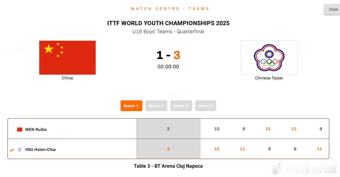 中国U19乒乓男团在世青赛爆冷止步八强,1-3不敌中国台北队创队史最差战绩,核心