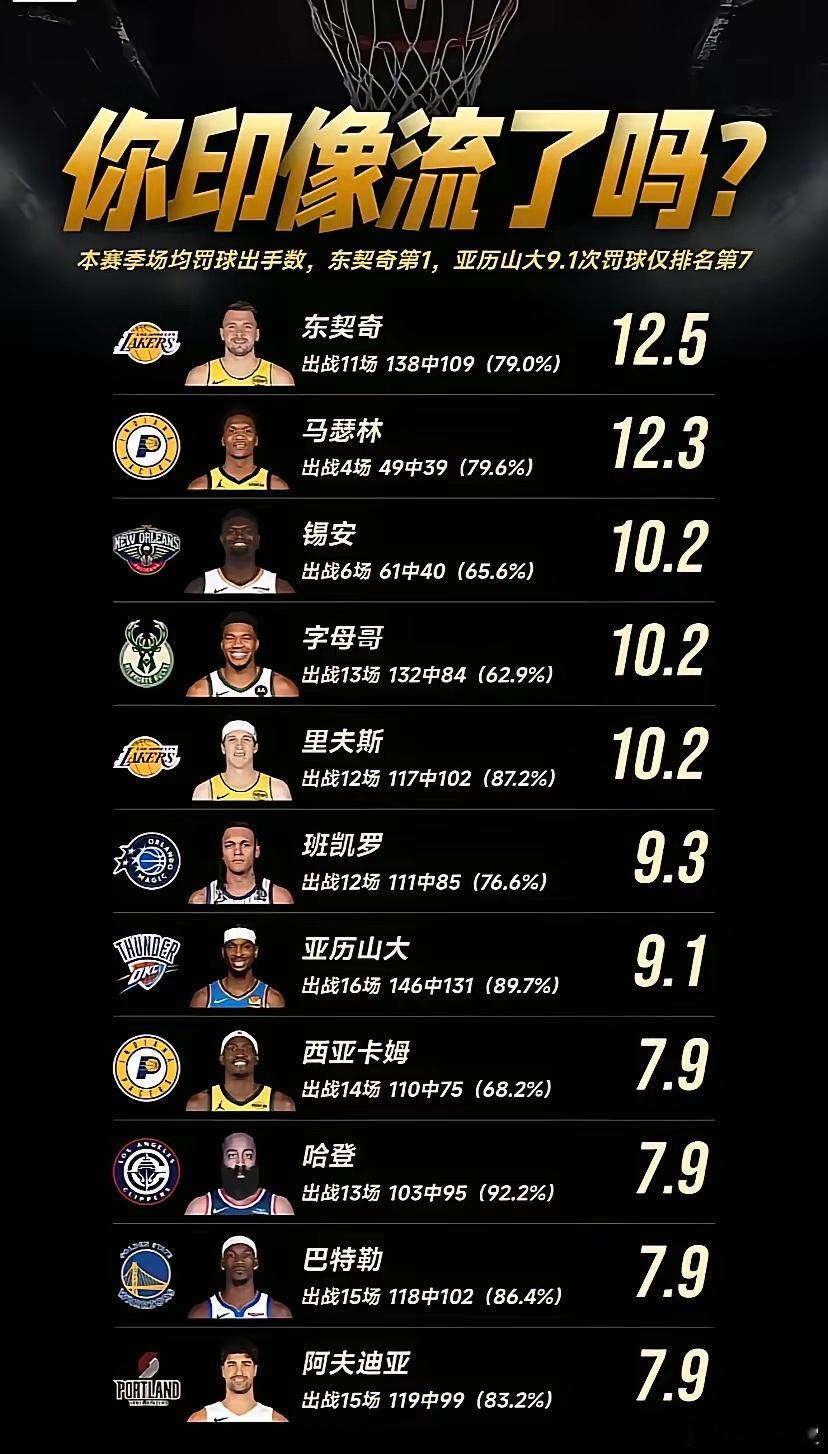 NBA球员场均罚球出手数排行,谁是你心中的罚球王?