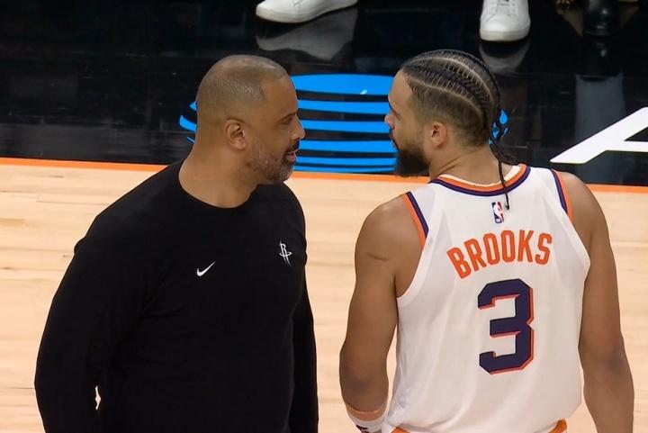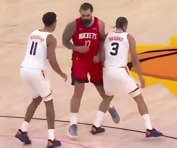 本场太阳主场迎战火箭,有很多看点,例如狄龙奥科吉战旧主。 狄龙毫不客气,在一次防守较量中,狄龙故意发力撞开前队友亚当斯,还从其身上跨过去。不过只被吹了普通犯规。 看来狄龙布鲁克斯的核心力量非常强,能把大中锋撞倒。目前和狄龙身高体型差不多的,就属灰熊的贝恩了。 另外我觉得雷霆亚历山大和国王的施罗德体型非常像,都是“瘦骨嶙峋”型的。