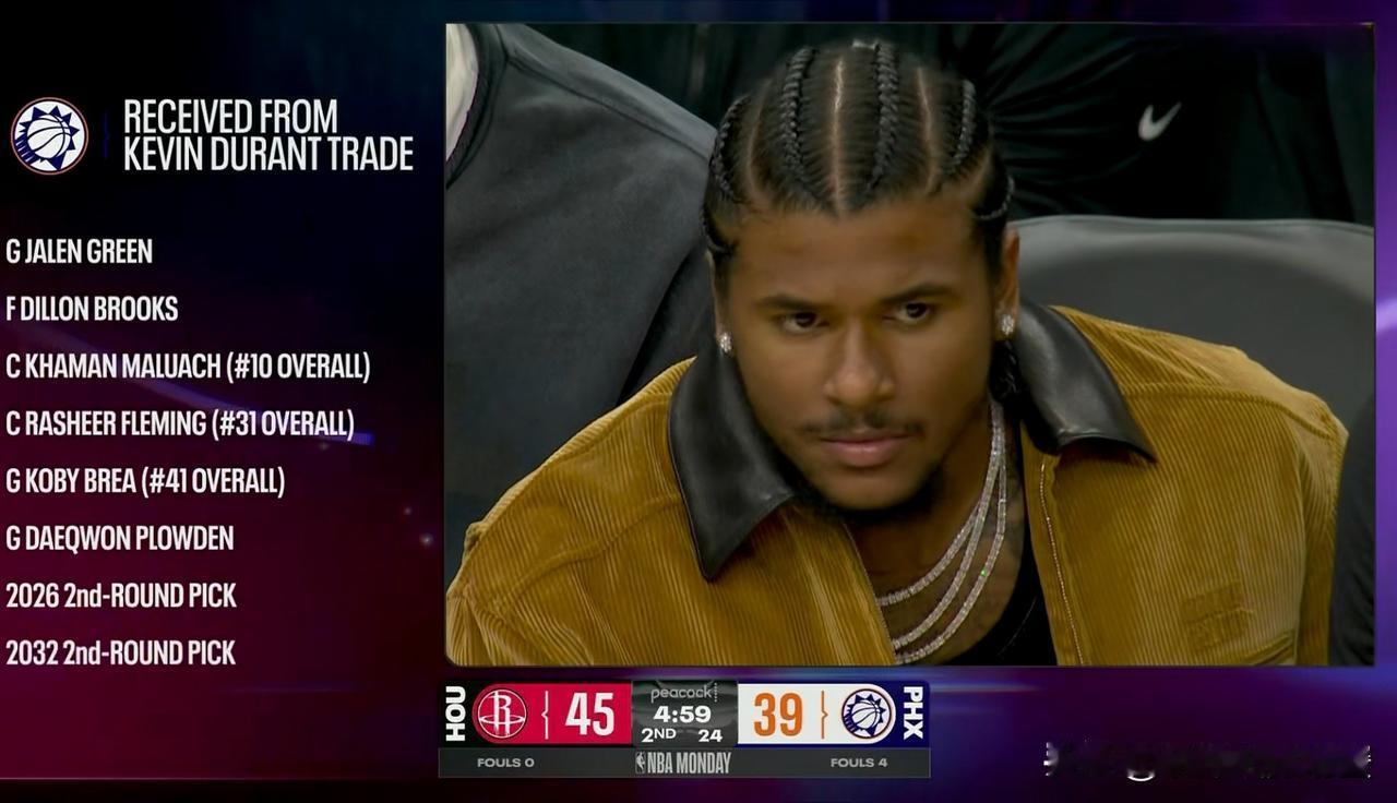 太阳超级后卫杰伦-格林真是太落寞了!在今天太阳主场迎战火箭的比赛中,当时比赛进行到了第二节的4分59秒,太阳以39:45落后于火箭。当转播镜头给到太阳的替补席时,只见此役因伤无缘对阵旧主的格林神情落寞的坐在场下,整个人看起来非常失落。从格林的眼神中可以发现,他是多么的渴望上场打球,他是多么的渴望带领太阳击败老东家火箭。