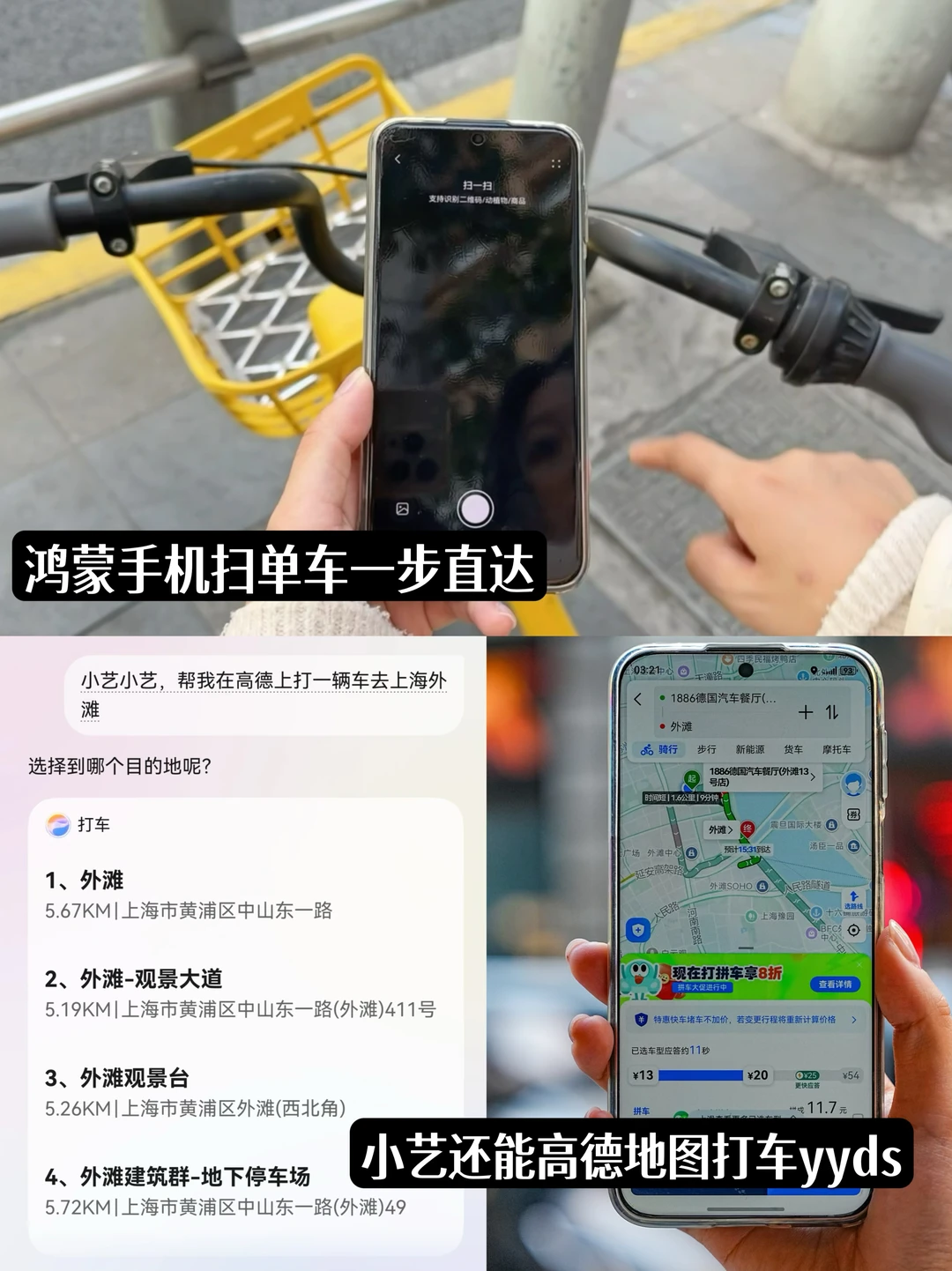 两景点离得近?骑美团单车吹吹风超惬意;距离远就选地铁或打车,打车直接喊小艺叫车,不用手动操作超方便~[点赞R]