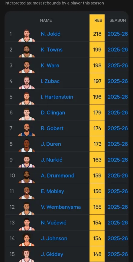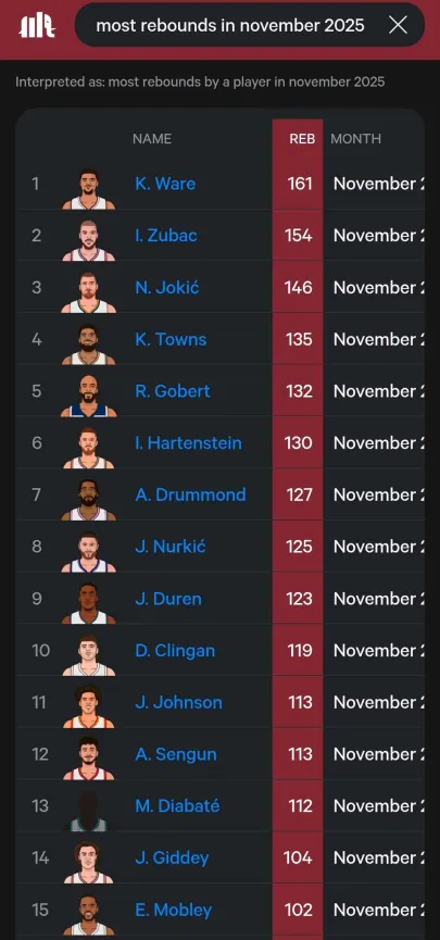 截止今天,NBA本月的篮板数最多的是韦尔,本赛季他篮板数位列第三。