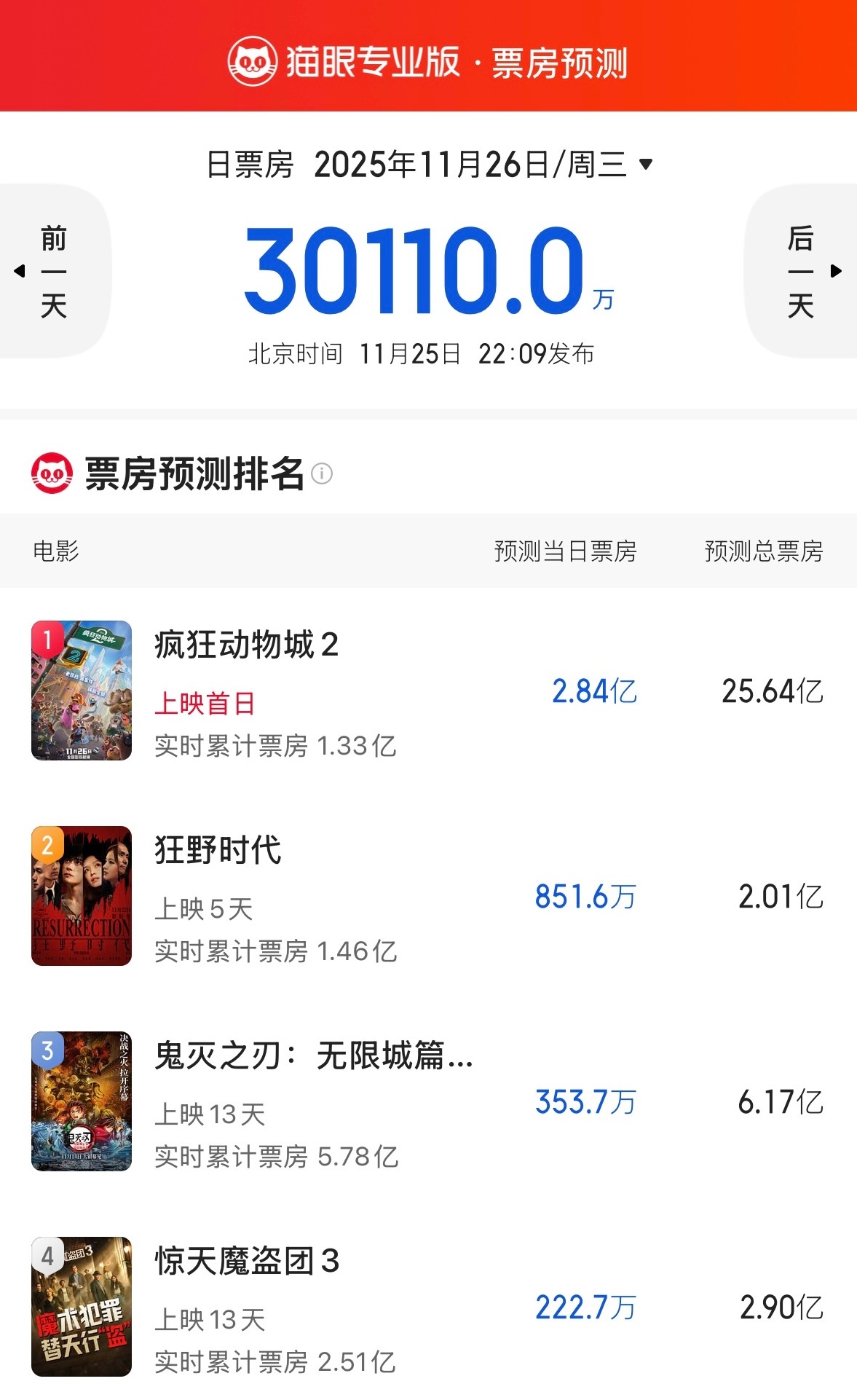 爆爆爆!猫眼预测《》内地总票房破25亿,达到惊人的25.64亿元!将大幅刷新进口动画电影票房纪录!(注:9年前的《》内地总票房15.38亿元!)