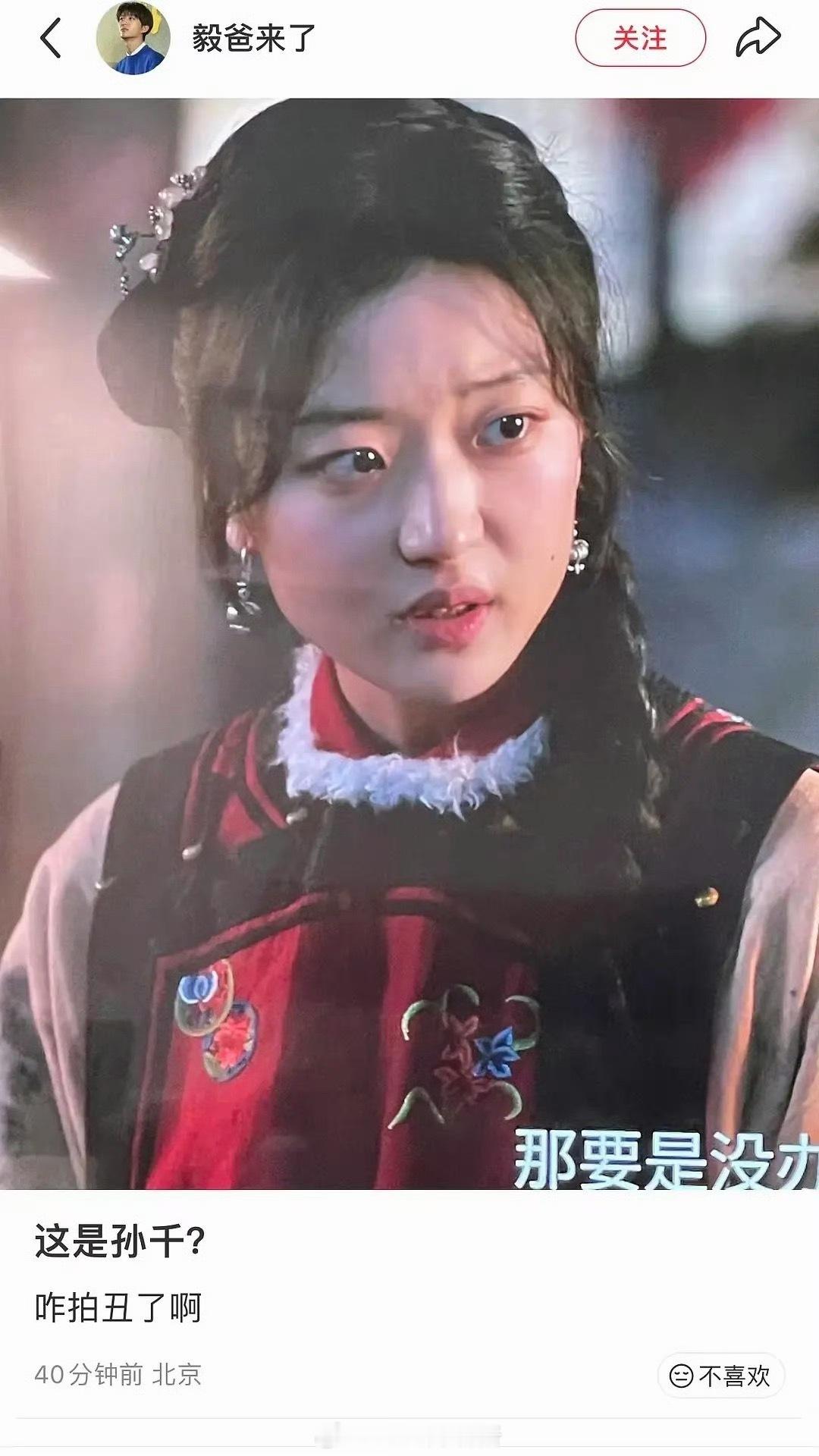 孙千在大生意人里面颜值被质疑了 其实我一直都不太能get她 还是现代剧靠氛围感加持比较适合她
