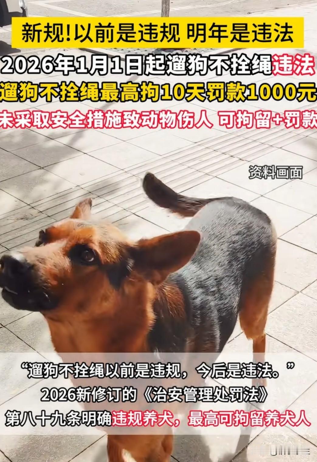 明年 1 月起,遛狗不拴绳将正式违法,最高可处十日拘留及 1000 元罚款。这一规定的出台,背后是城市养犬矛盾的集中爆发。数据显示,2024 年全国犬只伤人事件达 12.3 万起,纠纷投诉量同比上升 47%。 新规要求犬只外出必须佩戴电子标识牌并使用 2 米以内牵引绳,违规者首次罚款 500 元,三次以上将没收犬只。很多养犬人士觉得这限制了养犬自由,但实际上,这是文明养犬的必然要求。 电子标识牌就像是犬只的 “身份证”,可实现犬只溯源。一旦发生犬只伤人或走失等情况,能快速找到犬主人,从根本上解决弃养问题。而且牵引绳不仅能保障他人安全,也能防止犬只乱跑发生意外。 城市是大家共同的家园,养犬自由不能建立在危害公共安全的基础上。文明养犬,既是对他人的尊重,也是对自己爱犬的负责。让我们一起遵守规定,营造一个和谐安全的生活环境。