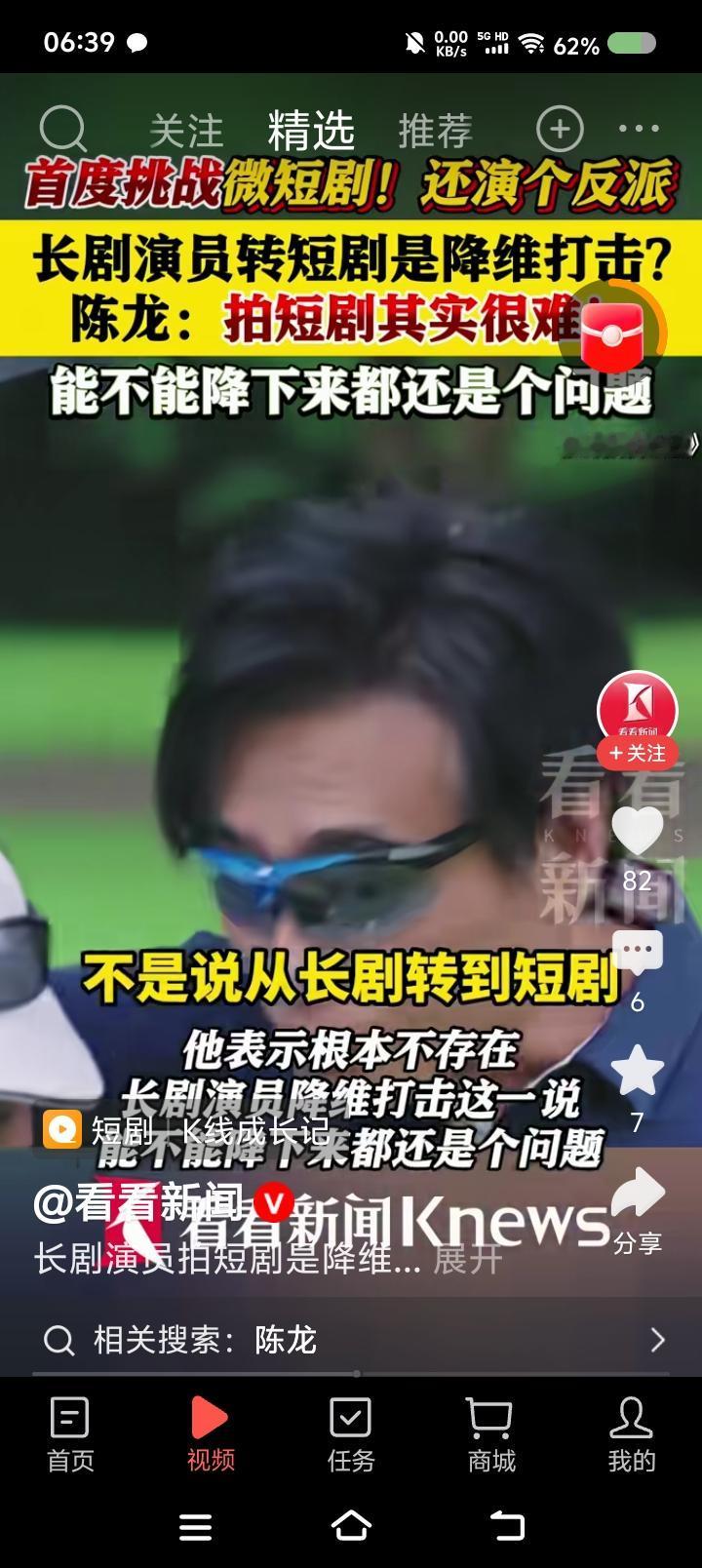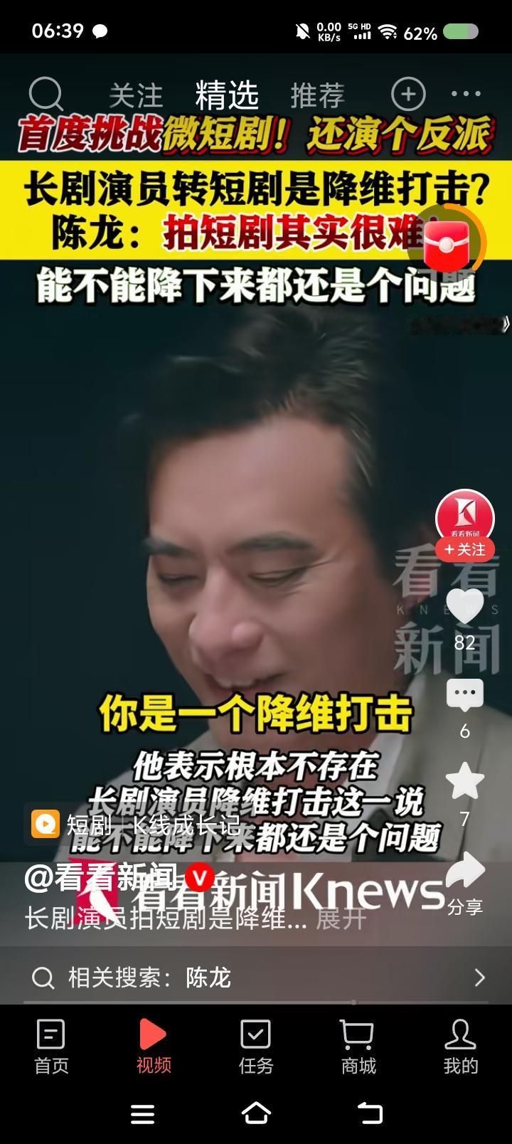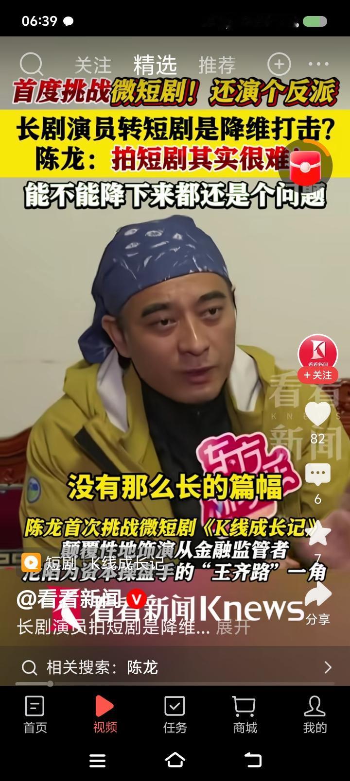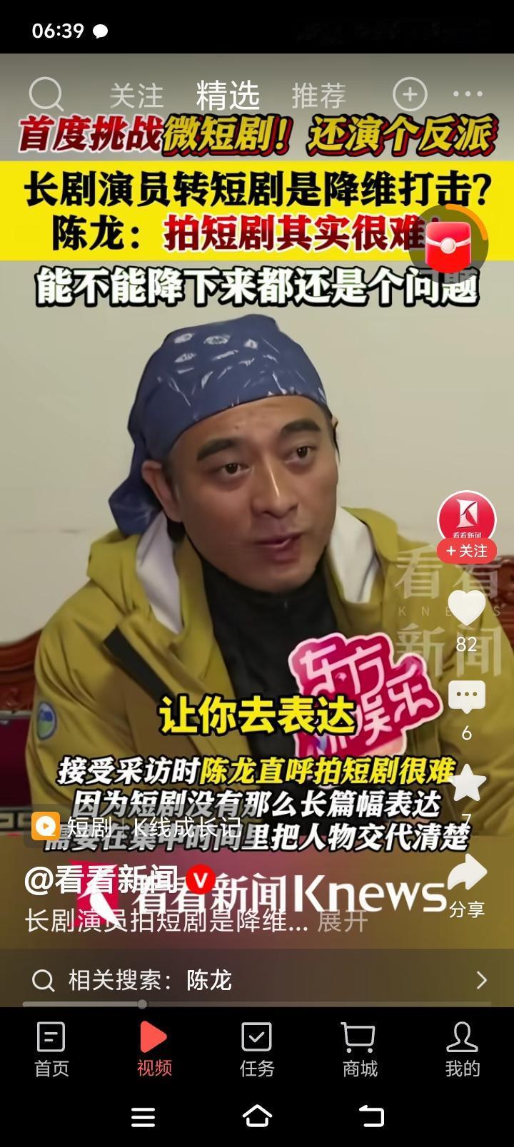短剧为什么会出现?—— 据报道,陈龙开始拍微短剧,演反派。他认为“长剧演员拍短剧