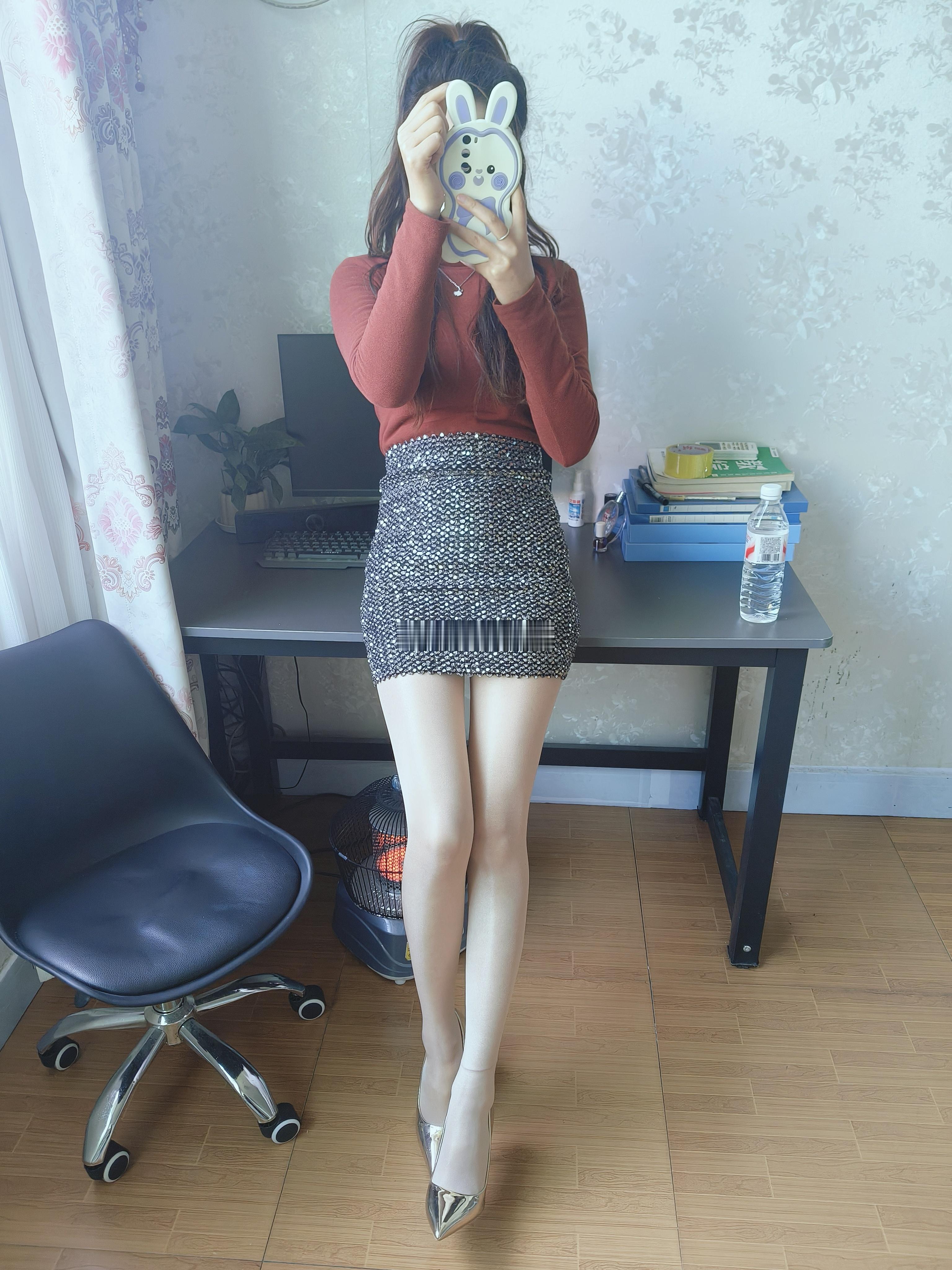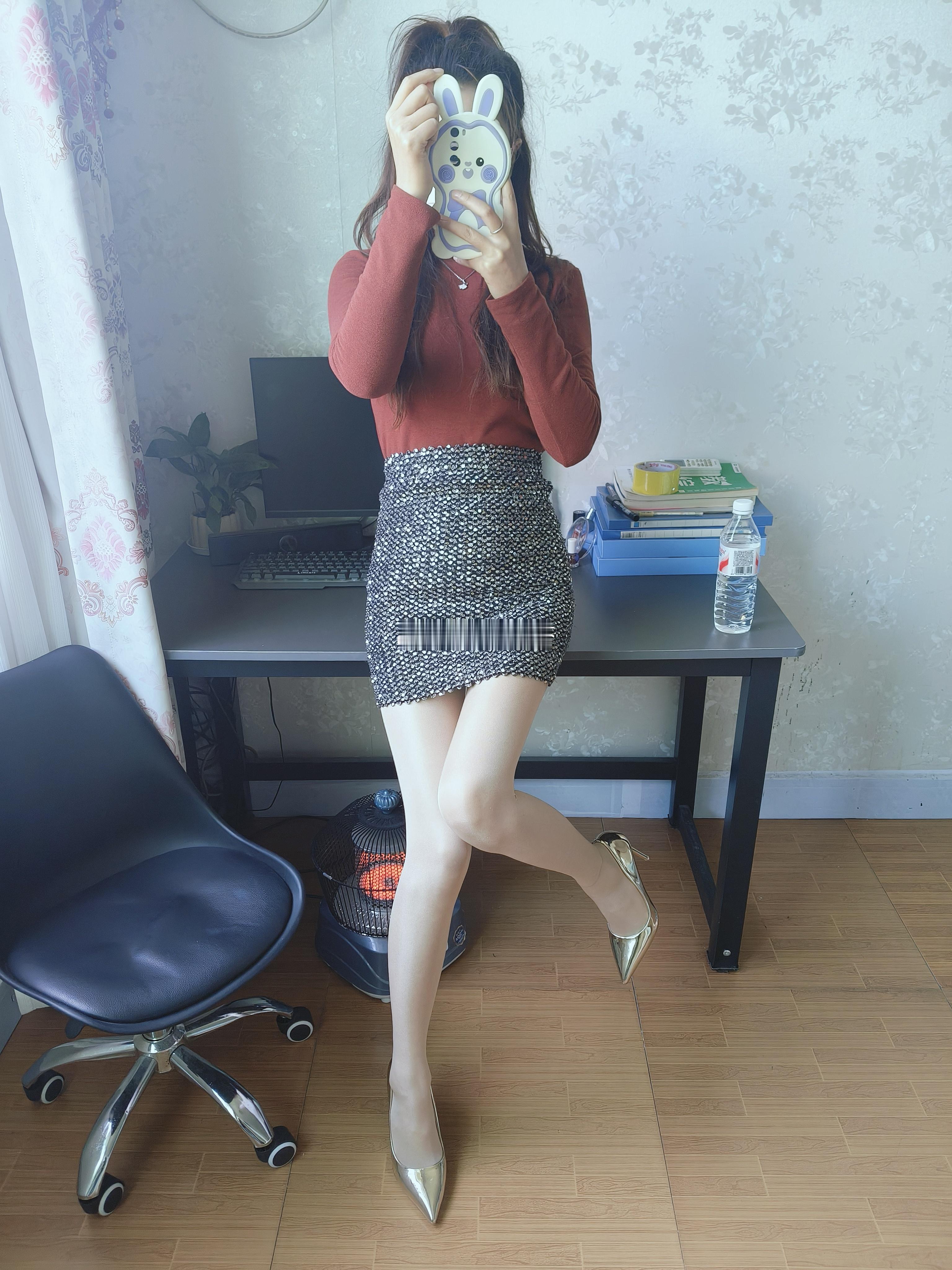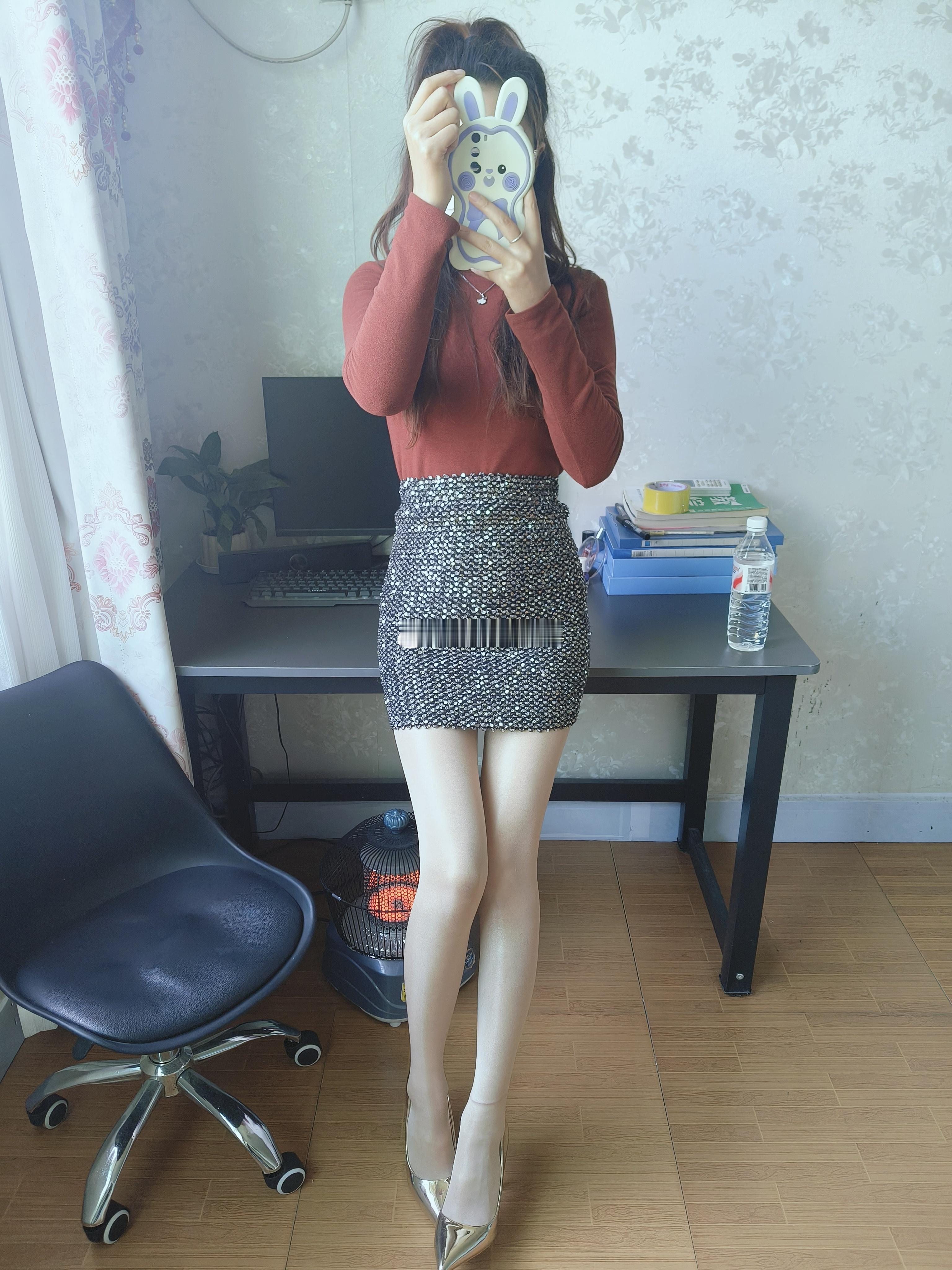 新裙子配丝袜高跟鞋,办公室的“腿玩年”女王!