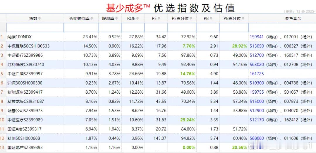 ETF大赛 基金超话 2025年11月24日主要指数估值表估值中概互联纳斯达克ETF$酒ETF sh512690$