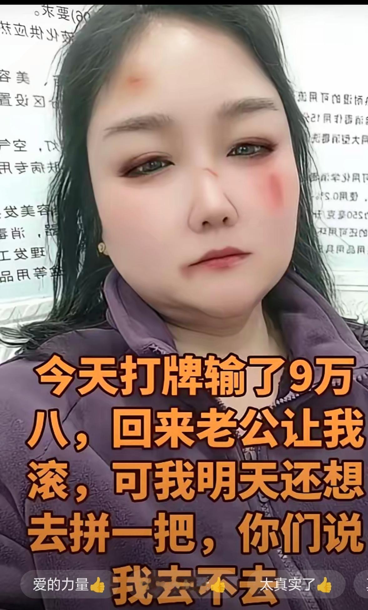 气到无语!女子打牌一晚输9万8,回家被丈夫怒打赶出家门,竟还执迷不悟想隔天再拼一把翻本,根本没意识到自己在往火坑里跳。 9万8对普通家庭来说,是攒大半年都难存下的血汗钱,输了不甘心能理解,但赌瘾上头想靠再赌回本,只会越陷越深,最后只会输得更惨、窟窿越捅越大。麻将本是亲友小聚的消遣,一旦押上身家,就成了毁家的赌博,这不是运气问题,是贪念作祟,更是没底线的糊涂。