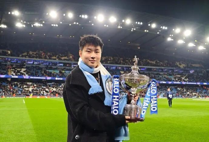 排面!赵心童造访曼城受热捧 5万人前秀世锦赛奖杯 获赠147号球衣赵心童 北京时间11月26日,28岁的中国斯诺克名将造访英超豪门曼城,并且在现场观看了与勒沃库森的本轮欧冠比赛。曼城官方晒出了赵心童到访的照片,这位中国斯诺克名将围着曼城围巾,在进场时,被现场曼城球迷围着要签名。随后,赵心童在可容纳超过5万名观众的伊蒂哈德球场面前,大方展示自己今年世锦赛夺冠的奖杯,现场球迷也为他送上掌声。而曼城官方也对赵心童的到来,表示热烈欢迎:“让我们欢迎今天伊蒂哈德球场的特别来宾——斯诺克世锦赛冠军赵心童”。不仅如此,曼城官方还为赵心童送上了一件印有他名字的“147号”球衣。赵心童也用“Come on City!”来为曼城助威。遗憾的是,本场比赛,曼城主帅瓜迪奥拉意外选择大轮换,最终替补出战的曼城在主场0-2不敌勒沃库森。赵心童也没能在现场,见证心爱的球队取得胜利。现年28岁的赵心童,在今年的斯诺克世锦赛击败诸多顶尖选手后夺冠,成为首夺世锦赛冠军的中国选手。而不久前,他又先后战胜墨菲、特鲁姆普、尼尔-罗伯逊等世界名将,摘得利雅得锦标赛的冠军。