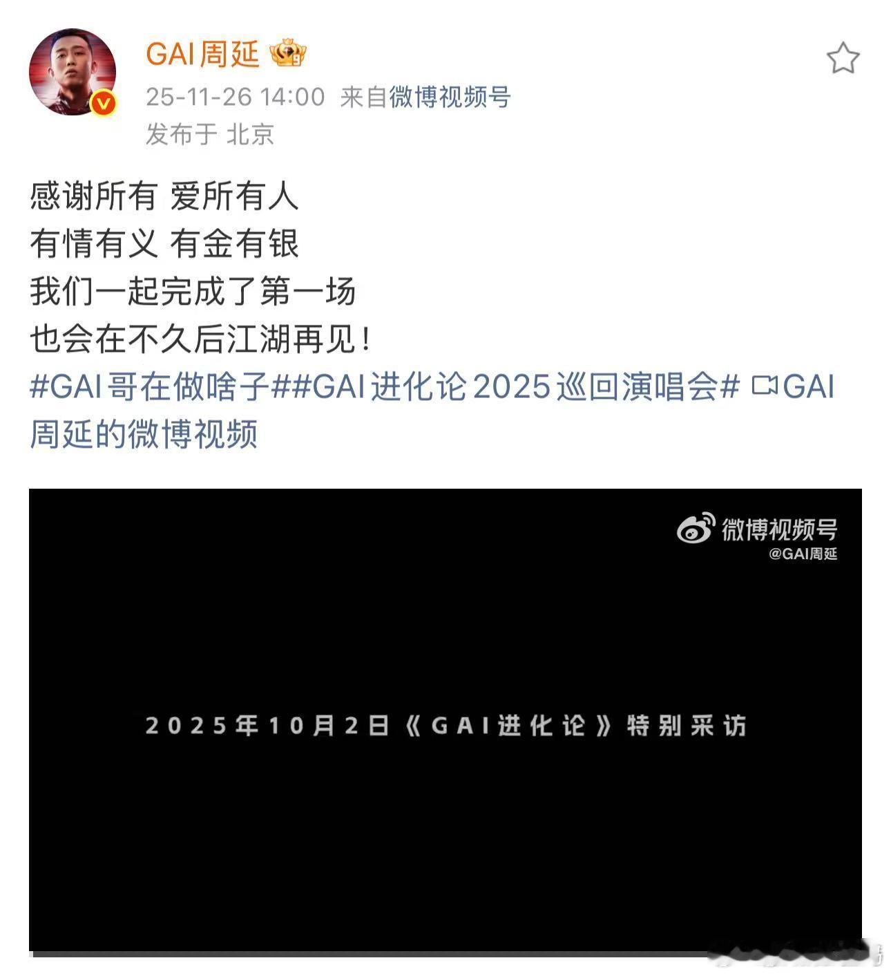 GAI演唱会还没戒断又续上了 纪录片让我更深刻地感受到GAI背后的努力和坚持,看到了一个更立体、更真实的周延,重庆演唱会完美的背后是他拼尽全力的付出,江湖再见什么时候见!