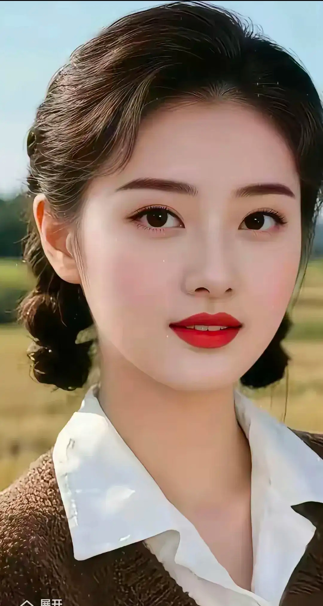 复古风穿搭,优雅红唇,田野里的时尚少女