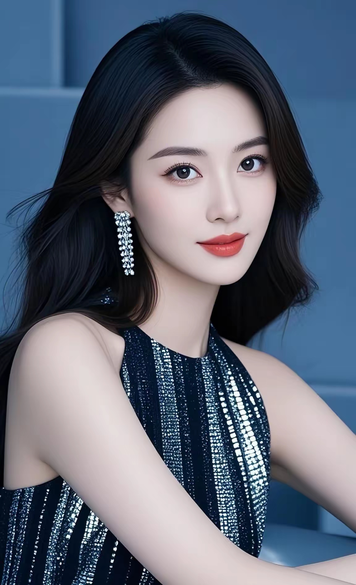优雅黑裙,闪耀耳环,红唇轻启,魅力无限!