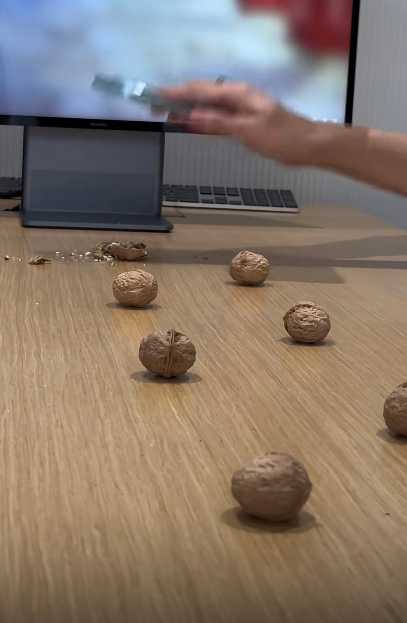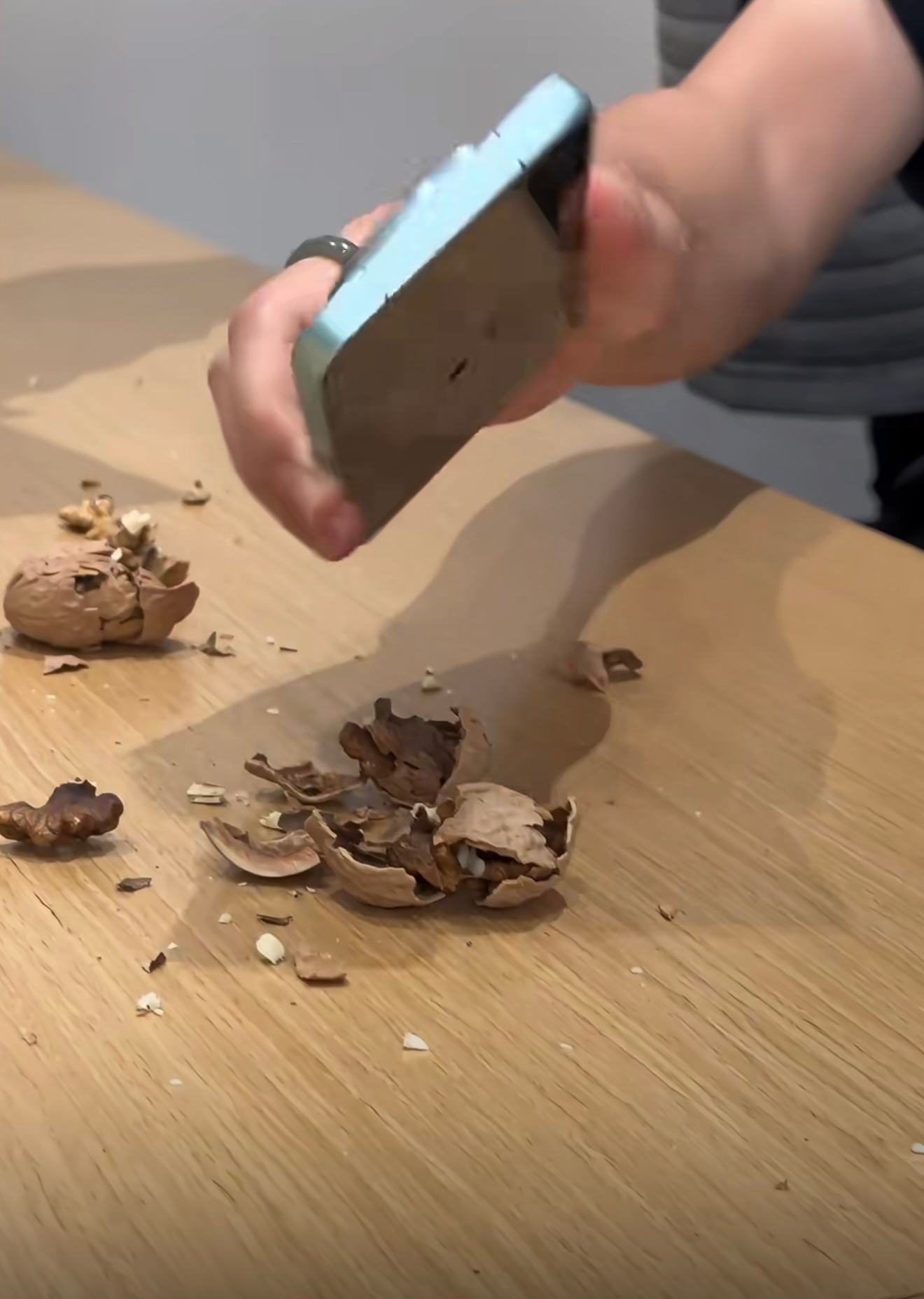 二代昆仑玻璃较一代耐摔抗刮性提升一倍有老铁用Mate80标准版连续拍8个核桃这种暴力测试真猛还是让我拍我都不敢拍完手机屏幕毫发无伤,主打一个皮实