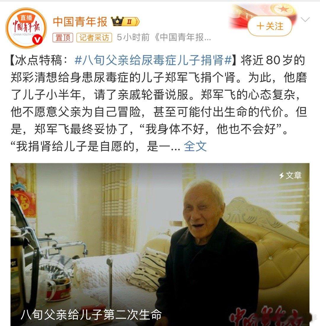 八旬父亲给尿毒症儿子捐肾父母对子女的爱永远是不计成本的