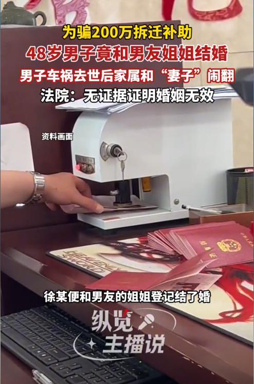北京,一企业男高管为了获得母亲的老房子的200多万元拆迁费,竟与情侣的姐姐领证结婚。可谁曾想,男高管在一次骑车过程中遭遇车祸离世。后那位姐姐就起诉了男高管的母亲,想要分割遗产。男高管的母亲反诉,要求法院认定二人的婚姻无效。法院判了!(来源:纵览新闻) 据悉,男子徐某是某企业的高层管理人员,但他是个同性恋,而且有一个很稳定的同性伴侣薛某。薛某是医生,二人已经在一起生活了10年。家里人从一开始的反对,到最后也只能接受现实了。 2024年12月份,徐某的母亲所在村子启动了拆迁补偿政策,徐某的母亲家里可以获得200万元的补偿,此外一户中每个人头有二三十万的安家费。 为了这二三十万,徐某打算找人假结婚,于是想到了薛某还有一个姐姐,丧偶且育有一子,而且都是自家人正好合适。在经过一番协商后,徐某和薛某的姐姐去领取了结婚证,并约定等拿到拆迁费后,就去办理离婚手续。 然而天算不如人算,在2025年2月的一天,徐某在骑车途中与一辆小轿车发生碰撞,徐某不幸离世。 原本按计划获得拆迁利益的二人,因徐某的突然离世,合作关系顿时分崩离析。 这时薛某的姐姐却动起了歪心思,既然自己和徐某结婚了,那自然可以继承徐某的遗产。为此,薛某的姐姐就将徐某的母亲告上了法院,要求以合法妻子的身份继承徐某的遗产。 然而徐某母亲是知道内情的,徐某和薛某的姐姐结婚,只不过是为了多拿点拆迁补偿,所以她反诉要求认定二人的婚姻无效。 《民法典》第153条规定,违反法律、行政法规的强制性规定的民事法律行为无效。但是,该强制性规定不导致该民事法律行为无效的除外。违背公序良俗的民事法律行为无效。 本案中,徐某和薛某的姐姐之所以结婚,并不是因为二人有感情,而是为了获得拆迁利益。而婚姻本应是基于情感和责任建立的亲密关系,所以徐某和薛某姐姐的行为是违背公序良俗的。 可是薛某姐姐的代理律师表示,薛某姐姐与徐某的婚姻关系并不存在法定无效的情形。 《民法典》第1051条规定,有下列情形之一的,婚姻无效:(一)重婚;(二)有禁止结婚的亲属关系;(三)未到法定婚龄。 徐某和薛某姐姐都是具备完全民事行为能力的成年人,且符合婚姻登记的条件。更何况,他们二人是在自愿的情况下依法登记结了婚,所以不存在上述三种无效婚姻的情形。 律师还强调,结婚的动机和目的,并不会影响婚姻的效力。即便两个人为了一些利益而结婚,但这并不属于法定婚姻无效的事由。 法院经审理后认为,民事诉讼法的解释第90条规定,当事人对自己提出的诉讼请求所依据的事实或者反驳对方诉讼请求所依据的事实,应当提供证据加以证明。在作出判决前,当事人未能提供证据或者证据不足以证明其事实主张的,由负有举证证明责任的当事人承担不利的后果。 法院调查发现,薛某的姐姐从始至终未承认是为了利益而与徐某结婚的,徐某母亲也没有提交证据证明,所以应当承担举证不能的后果。 最终,法院判决驳回了徐某母亲的诉请。 徐某母亲提起上诉,称徐某和薛某姐姐登记结婚,目的就是为了获得拆迁补偿,这个属于虚假意思表示。 如果承认了徐某与薛某姐姐的婚姻关系,无异于在侵犯集体拆迁资源,损害了其他村民利益,这个行为就是违背了公序良俗。 因此,一审法院认定事实错误,忽略了法律行为效力的一般规则,且在适用法律规定是存在错误,应当予以撤销。 二审法院经审理后认为,目前法律上对于婚姻无效的认定并不多,包含了违背公诉良俗、婚前隐瞒重大疾病、重婚、禁止结婚的亲属关系、未到法定婚龄。 徐某母亲虽然主张徐某和薛某姐姐可能是为了拆迁利益结婚,但这不是婚姻无效的法定事由。 因此,二审法院也驳回了徐某母亲的诉请。不过,徐某母亲没有放弃,她已经申请了再审。 如果徐某母亲再审还失败,那薛某姐姐就能顺理成章的法定继承徐某的遗产,也就是要分掉差不多一半的遗产,难怪徐某的母亲如此激动,换作谁都无法接受啊! 对此,您怎么看?欢迎留言交流。