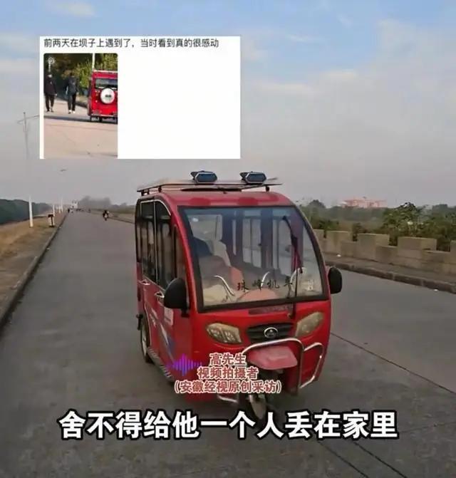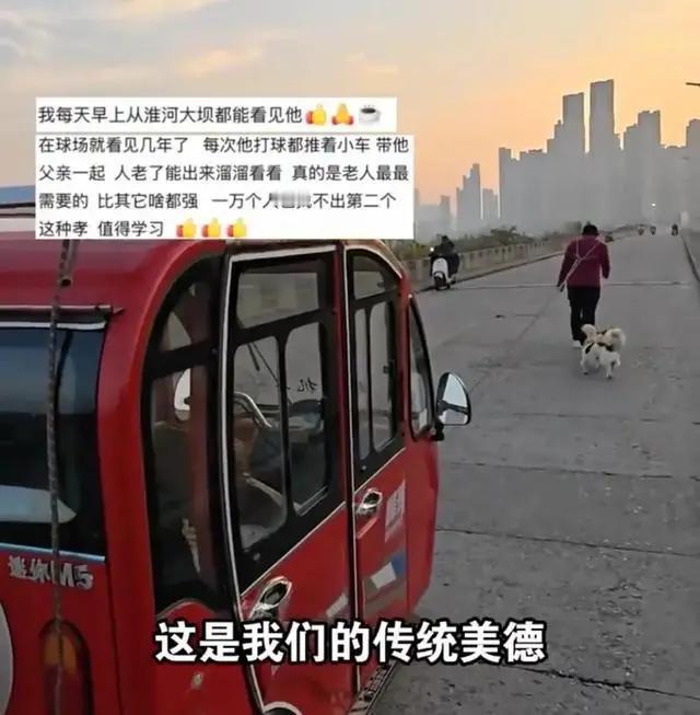 61岁儿子用车拉100岁父亲晨练,这一幕太暖心。在蚌埠淮河南岸,刘德才套着绿绳拉着载着父亲的三轮车,这场景寒来暑往已持续四年。四年前他发现父亲爱坐三轮车出门,就想出拉车这个办法,既能让父亲散心,自己也能锻炼。 他每天早晚定时拉着父亲沿淮河堤坝往返三公里。拉车时他会和父亲念叨家常,父亲即便偶尔糊涂,也会对他露出慈祥的笑。母亲离世让他更珍惜陪父亲的日子,只要父亲身体允许,他就会一直拉下去,这就是陪你到老最好的样子。