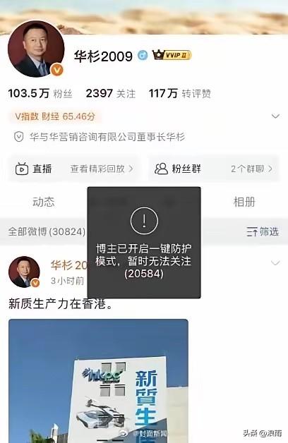 罗永浩实在是太“坏”了。他成心让华杉今天晚上睡不着觉。 上午他说今天下午6点前,华杉必须要给他道歉,否则要放大招了。 下午他又说,有点小插曲改成明天了。 吃瓜群众纷纷跑到华杉那里想着和他互动一下。结果吃了个大大的闭门羹。华杉把门不仅关住了,而且还上了把锁—坐拥百万粉丝的他开启了一键防护模式,关注不了,也无法评论留言。 看来,华总这是闭门夜谈,商量对策去了。今夜注定无眠了。
