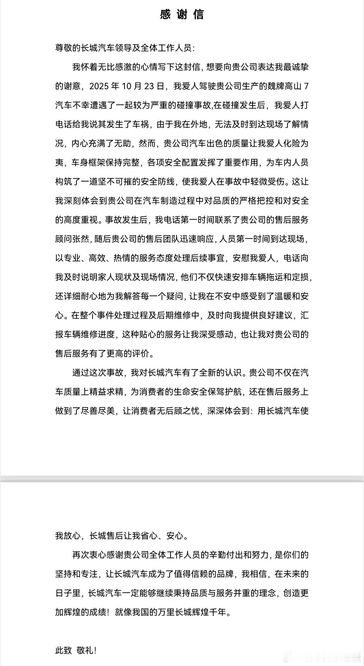兄弟们!见过不少车企售后的宣传,魏牌这次是真让我刮目相看!车主送锦旗致谢,售后顾