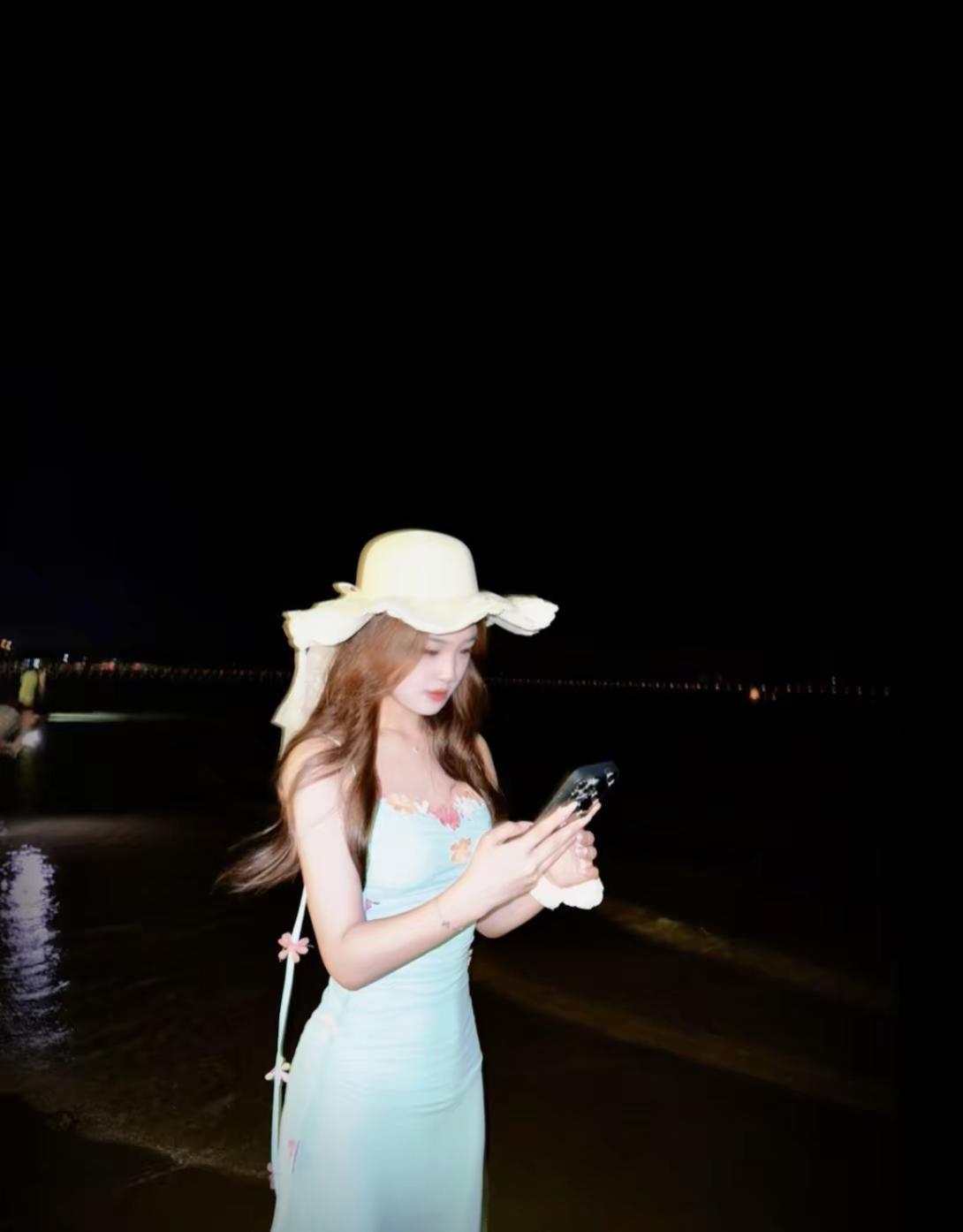 明黄碎花裙盛满春日气息,蓝底花巾轻系颈间,马尾卷发漾着温柔,她是从花间走来的清雅