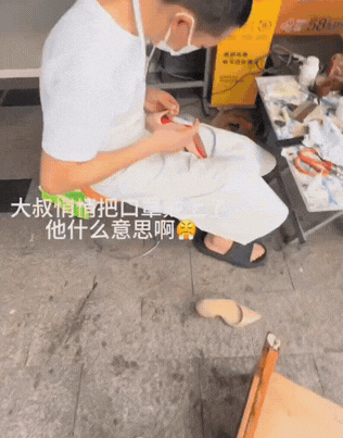 来修鞋,大叔悄悄把口罩带上了,他什么意思啊?[叹气][尬笑]