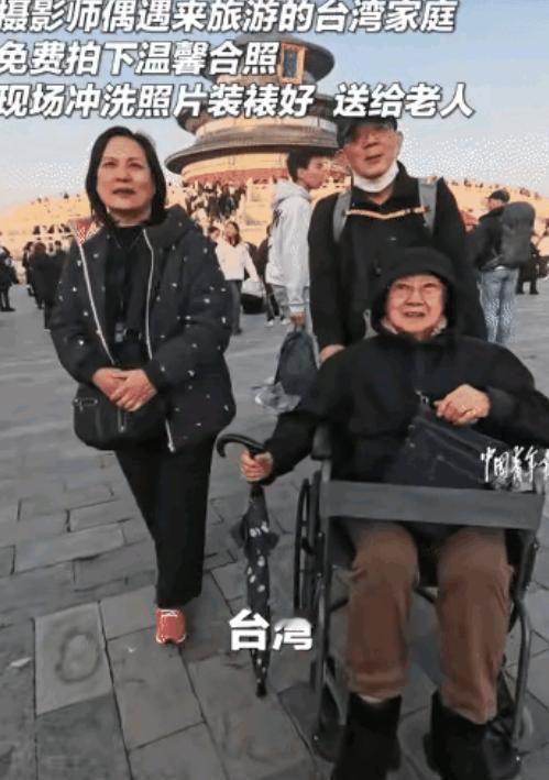 男子在北京天坛给一家人拍下合照,他问对方来自哪里?对方说:“台湾。”他又惊又喜,现场把照片冲洗好,免费送给对方。   北京天坛的冬意正浓,祈年殿的红墙蓝瓦在阳光下泛着温润的光,95岁的林奶奶坐在轮椅上,被祖孙三代围在中间,脸上的皱纹里都盛满了笑意。   摄影博主小李举着相机按下快门时,没料到这张普通的游客照,会成为跨越海峡的温情见证。    小李在天坛拍风景有些年头了,那天他刚拍完祈年殿的斗拱,就看见这家人正围着轮椅调整位置。   老人穿着藏青色外套,手里攥着个小布包,眼神一直盯着祈年殿的顶端,嘴角带着藏不住的向往。   我帮你们拍张全家福吧,角度好点,小李主动上前,对方立刻笑着道谢,拍完照小李随口问了句,您家是从哪边来旅游的呀?   扶着轮椅的中年男人笑着回答,我们从台湾来的,这是我奶奶,盼着来天坛盼了几十年了,小李手里的相机顿了一下,抬头看见老人正朝他点头,眼里闪着光。   您等我五分钟,我把照片打出来给您!他说着就往自己的摄影背包跑,里面常备着便携打印机和几个简易相框,本是为了方便客户,这会儿却觉得必须用上。    五分钟后,小李拿着装裱好的照片回来时,一家人都愣住了。   林奶奶颤巍巍地伸出手,手指轻轻划过相框边缘,一遍又一遍看着照片里的自己和家人,声音带着点哽咽,真好看,这红墙真气派。   她攥着小李的手不肯放,从布包里掏出块台湾带的凤梨酥塞给他,孩子,谢谢你,以后一定要去台湾玩,奶奶给你做蚵仔煎。   小李推辞不过收下,看着这家人推着轮椅走远,老人还频频回头挥手,后来小李把这段经历发到网上,很快就火了。   有网友留言说,奶奶的笑容里全是真性情,这就是一家人的感觉啊。   还有人想起了去年央视报道的福建向金门供水工程,通水那天金门乡亲举着“饮水思源”的牌子,和大陆施工人员拥抱的场景。   林奶奶的家人后来给小李发了条私信,说奶奶回到台湾后,每天都要把那张照片摆在客厅最显眼的地方,给来访的邻居讲天坛的故事,说“祖国的建筑就是气派”。   小李看着信息心里暖暖的,他想起拍照片时,阳光刚好穿过祈年殿的窗棂,落在老人的脸上,和两岸人脸上的笑容一样,都是暖融融的。    有人说这种小事不值一提,但正是这些小事,藏着最真切的亲情,小李没觉得自己做了多特别的事,他只是看见老人眼里的向往,又听到“台湾”这两个字,就下意识地想多做一点。   那张装在相框里的合影,定格的不只是红墙蓝瓦下的笑容,更是两岸同胞割不断的联结。   林奶奶盼了几十年的天坛之梦,在快门按下的那一刻圆满;而小李递出照片的瞬间,也让“两岸一家亲”不再是口号,变成了可触可感的温暖。    夕阳西下时,小李又拍了张祈年殿的剪影,照片里的红墙依旧庄严。   他想起林奶奶的笑容,突然明白,无论是天坛的红墙还是台湾的古厝,无论是大陆的凤梨酥还是台湾的蚵仔煎,根脉里的牵挂从来都没断过。   山河同源,人心归处,大概就是这样,在不经意的相遇里,在真诚的相待中,自然而然地流露出来。