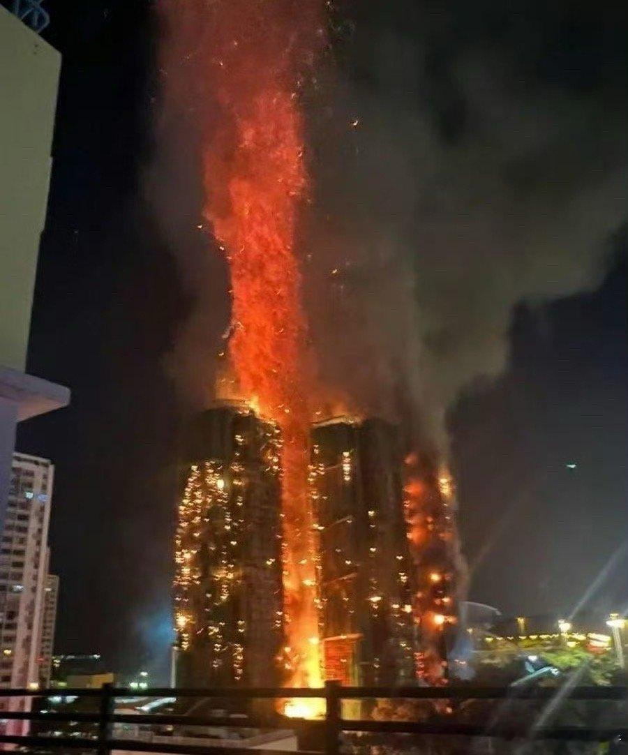 香港大火发生后一住宅单位传出爆炸声这几栋楼燃烧成瑞典火炬的结构了,热力环流向几栋建筑物核心走,因为核心区一直是外焰向四周灼烧,燃烧时间不但长,并且燃烧彻底。灭火难度非常大,都会烧透。
