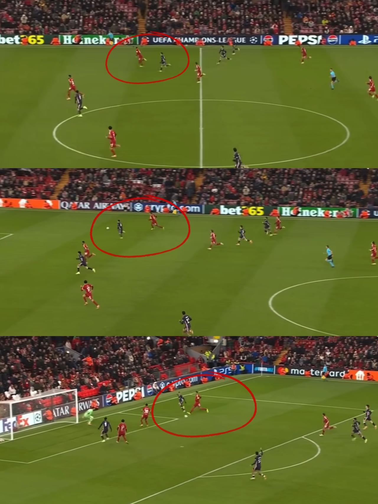 【范戴克成了大漏勺】利物浦1-4埃因霍温,范戴克打出战犯级表现! 比赛刚进行六分钟,范戴克就在自家禁区里模仿篮球巨星乔丹的品牌标志动作,手球送点,这是他本赛季送出的第三个点球。佩里西奇主罚命中,埃因霍温在安菲尔德取得了早早的领先。 对于埃因霍温打入的第四球,范戴克看上去像是在糖浆里奔跑,德斯特从他身边跑过并送上助攻(图3),全程没有感到一丝压力。 对于利物浦的第三粒丢球,尽管科纳特的失误是导致丢球的主要原因,但范戴克在对方进球过程中却毫无作为。利物浦