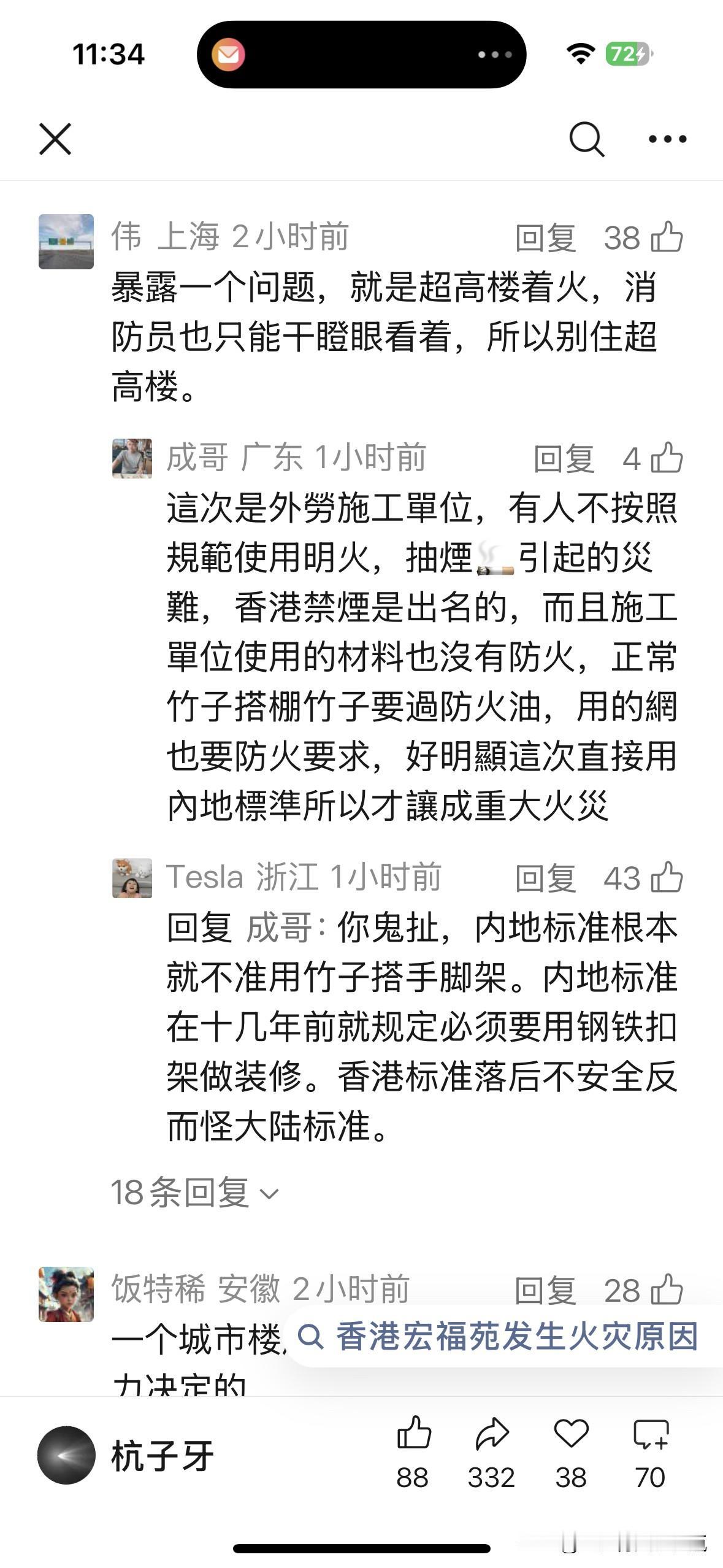 这次香港大火,网友讨论的焦点一下子就飙到了大陆标准和香港标准的对立上! 众说纷纭,很难分辨真假。