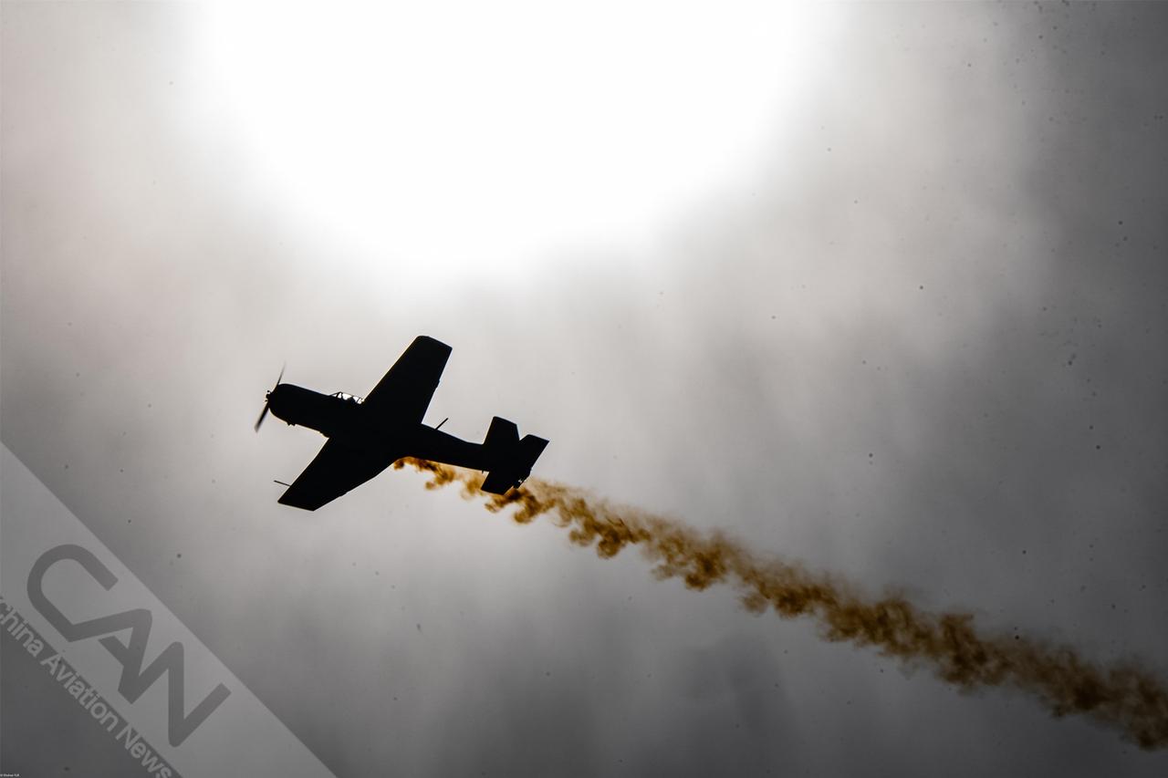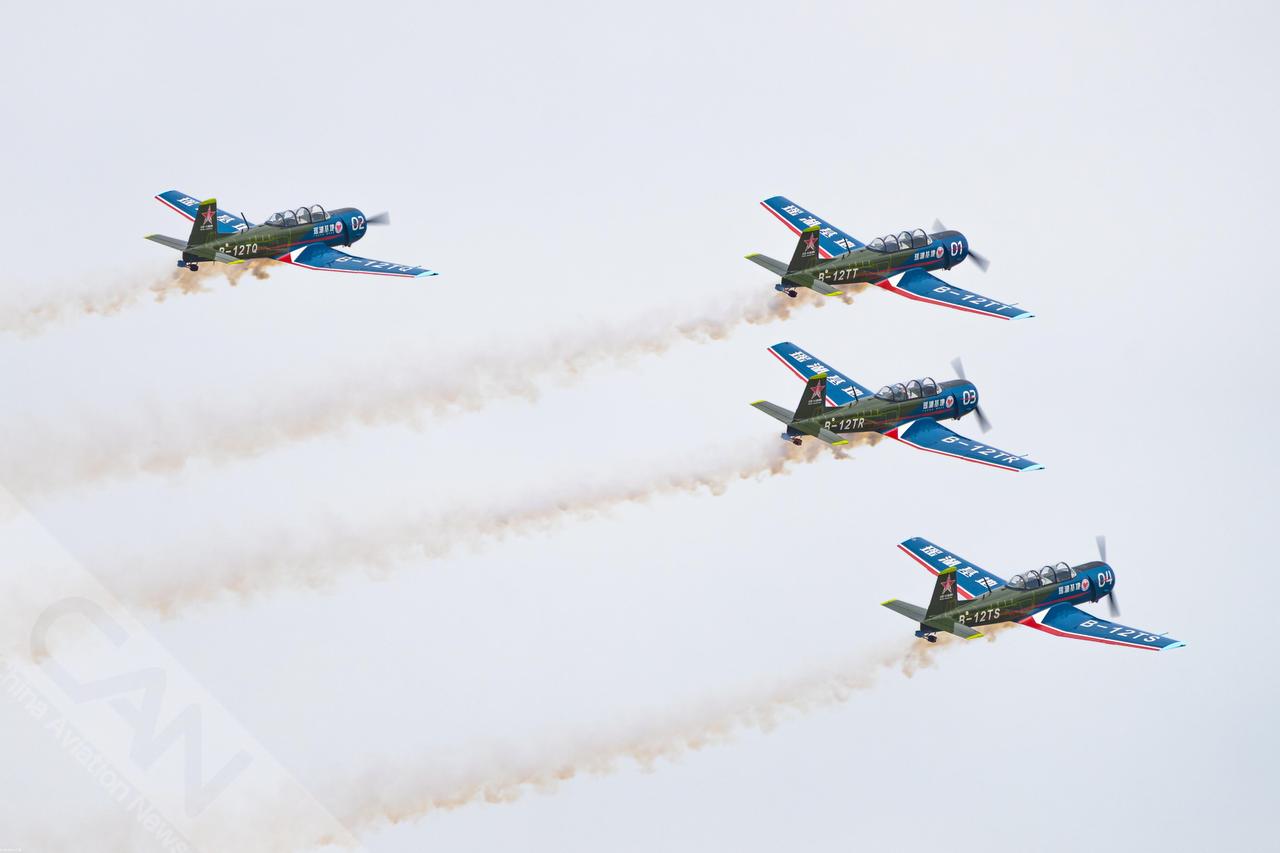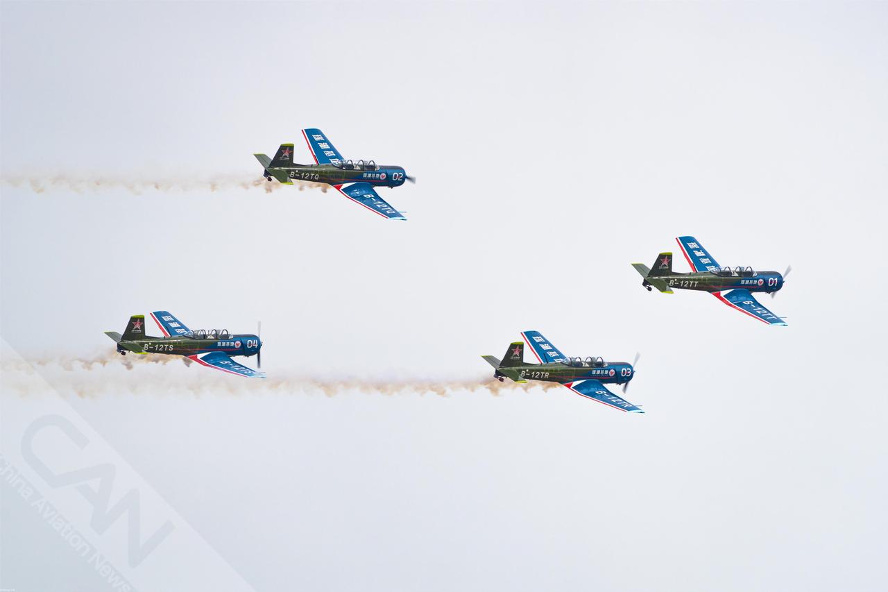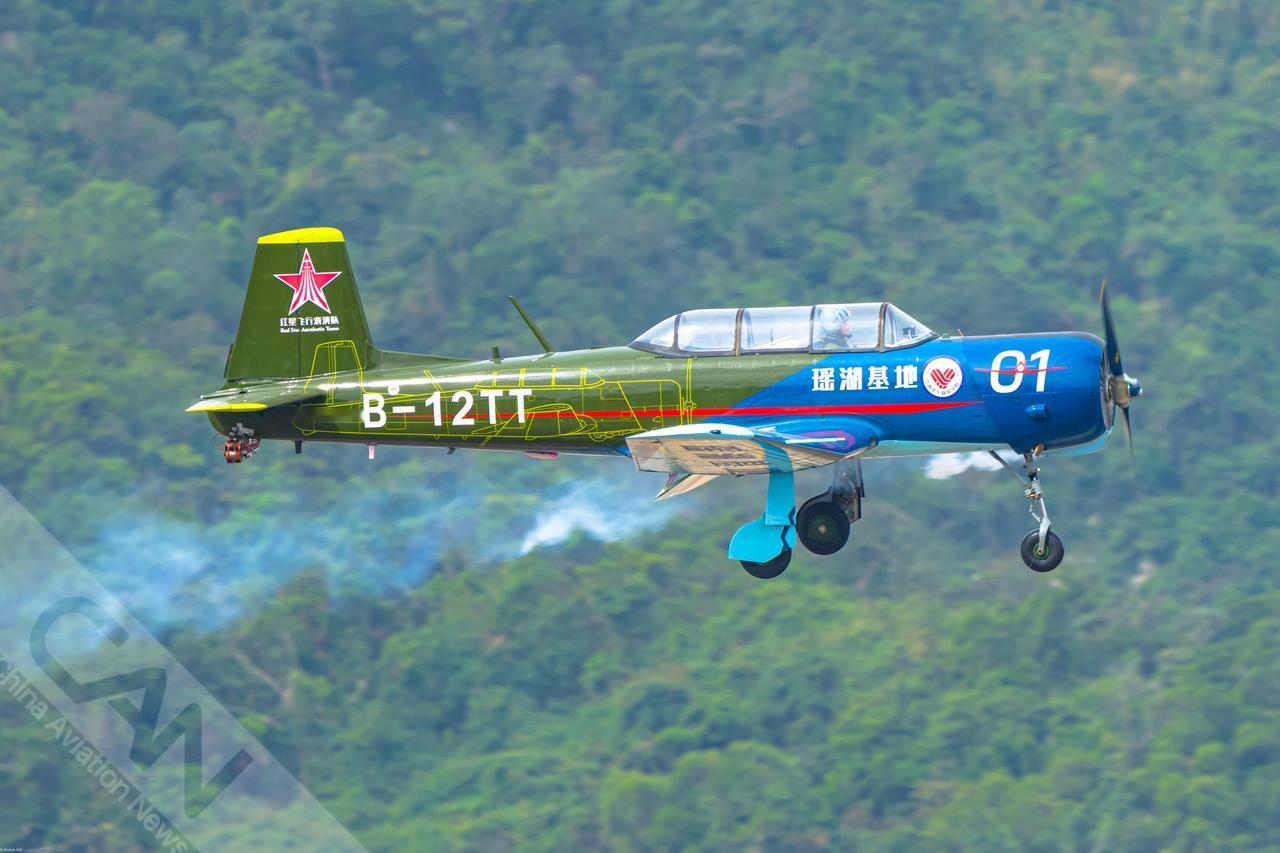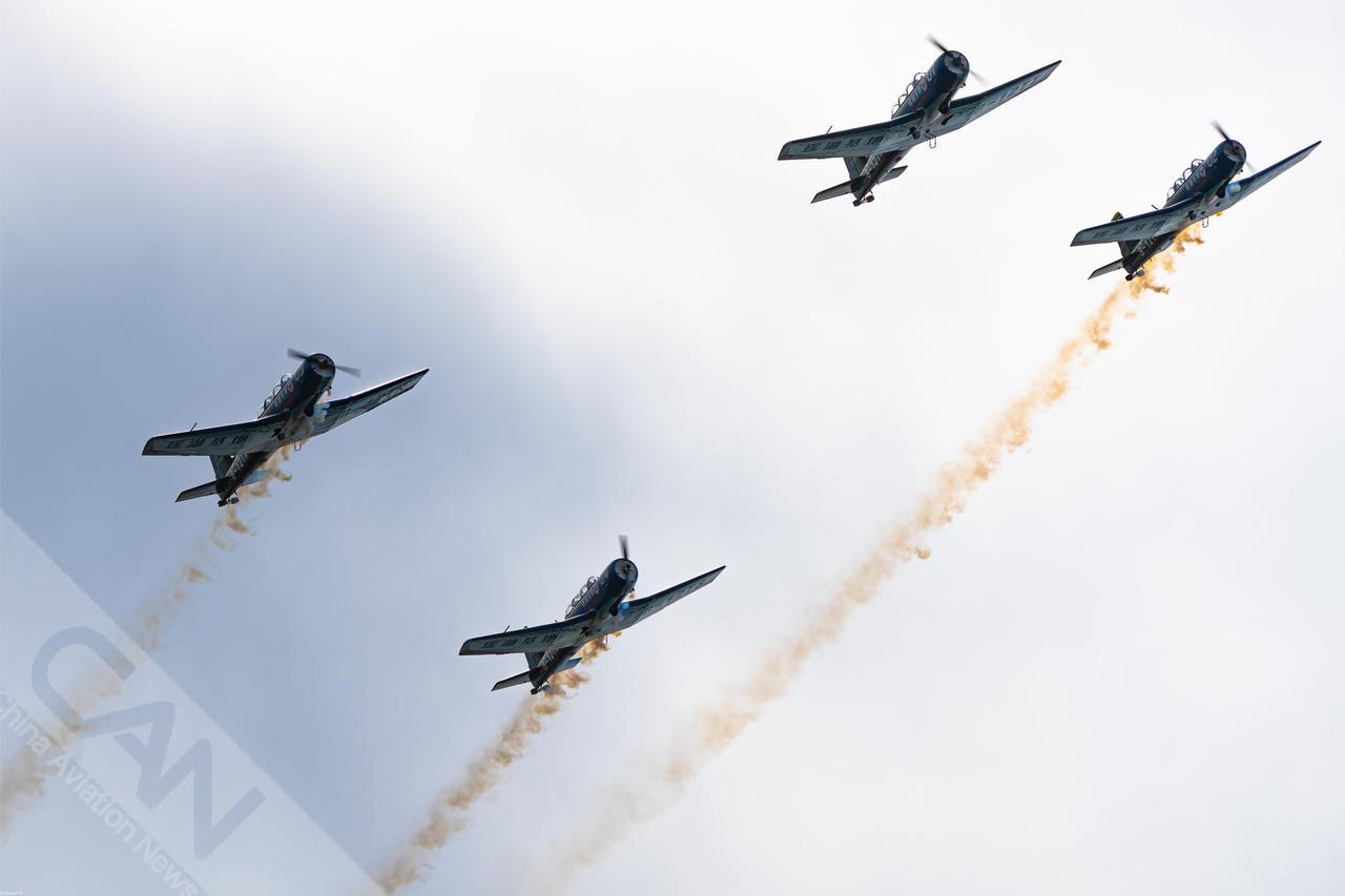 11月27日,2025亚洲通航展期间,“红星”飞行表演队4架民用初教6飞机在珠海上空进行飞行表演。红星”飞行表演队是中国第一支初教6飞机民间飞行表演队,也是中国第一支全部由退役空军资深飞行教官组成的飞行表演队。(摄影:岳书华)