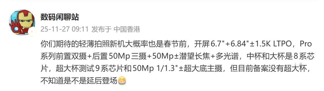 万万没想到,华为接下来还有大招! 而且很快啊,春节前就会到,全新的华为nova15系列,看配置真有点强吧?Pro系列前置双摄+后置50Mp三摄+50Mp±潜望长焦+多光谱,还是麒麟9系芯片,电池6开头的,轻薄拍照机,等华为终端机的有福了!