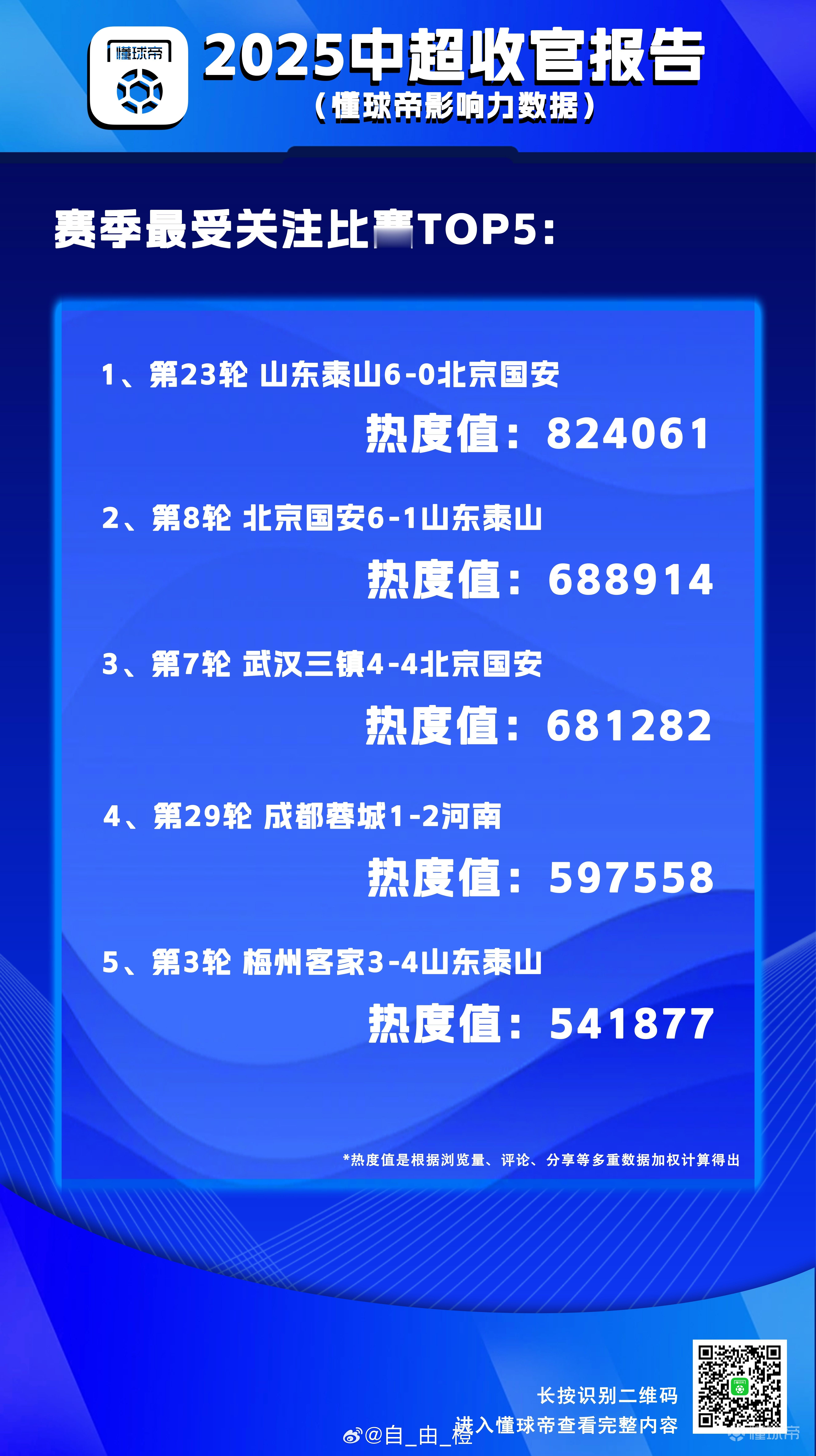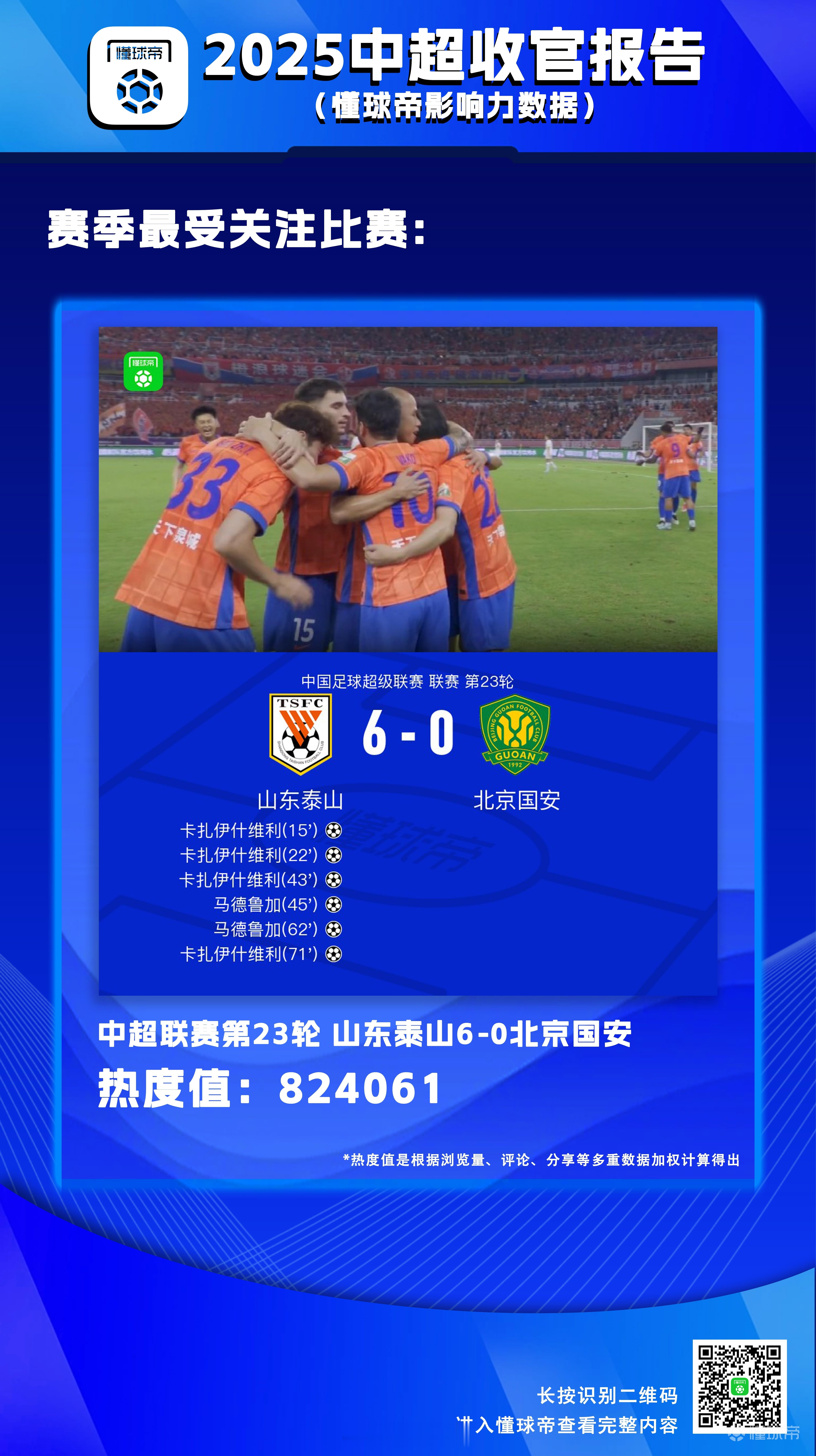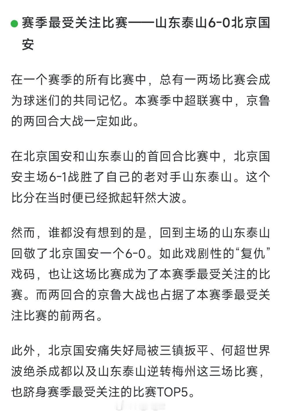 懂球帝评选出的赛季最受关注比赛——山东泰山6-0北京国安自由橙山东泰山