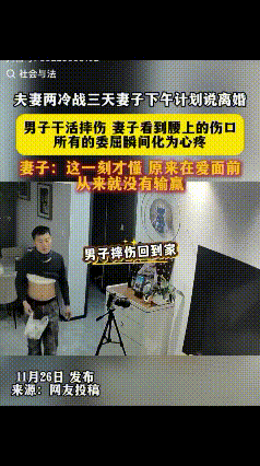 山西,夫妻冷战了三天,这次妻子是铁了心不低头,想着下午就和丈夫提离婚,准备好继续冷着脸进门,这时丈夫却叫住了她:能帮个忙吗?我的腰摔伤了…看到丈夫受伤的样子,妻子一下子心软了。