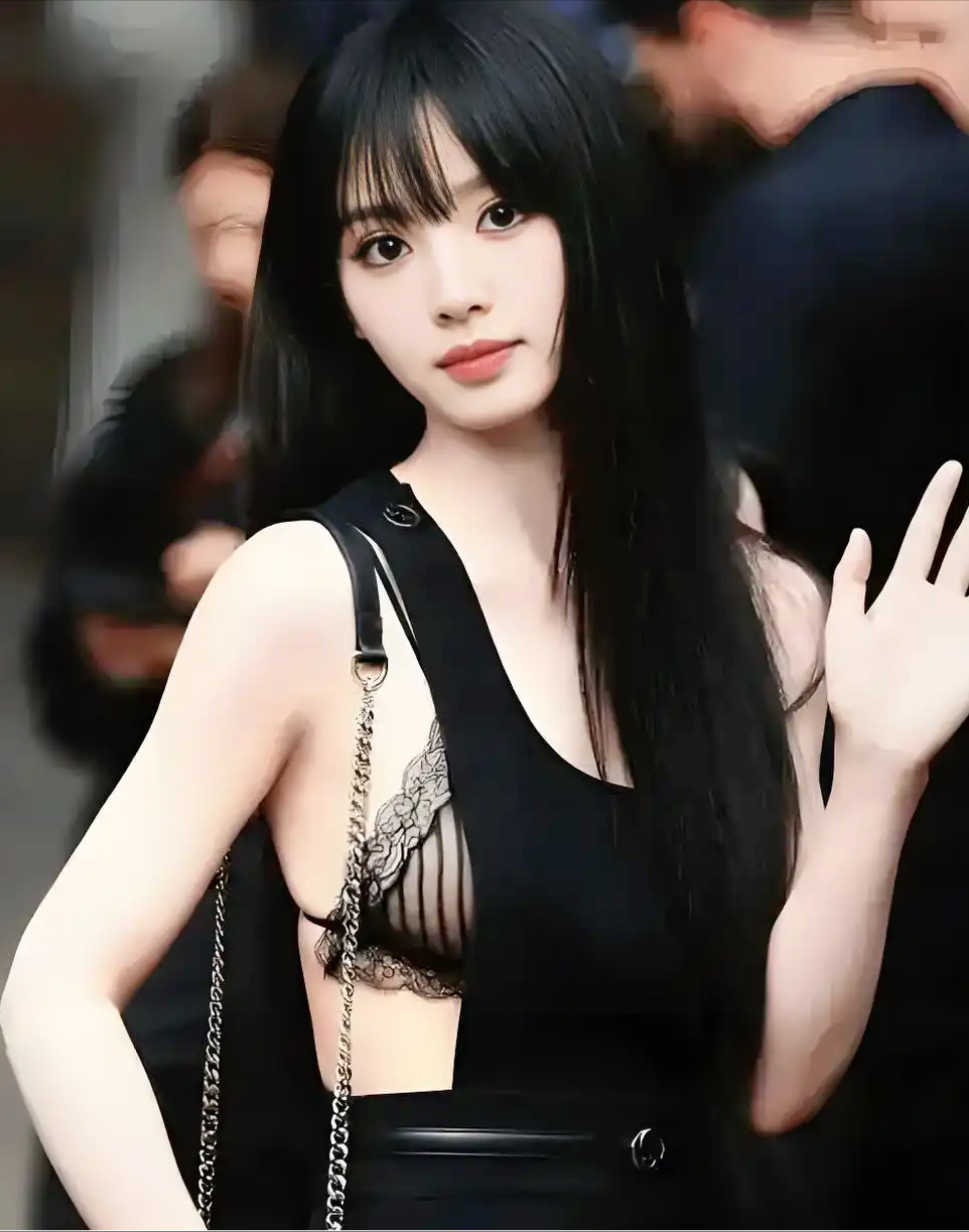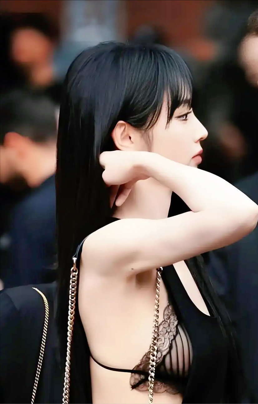 黑色系整个就是一个大反转,成熟且清冷,娇娆又性感,但有些生人勿近的压迫感,让人只敢欣赏,不敢亵渎。