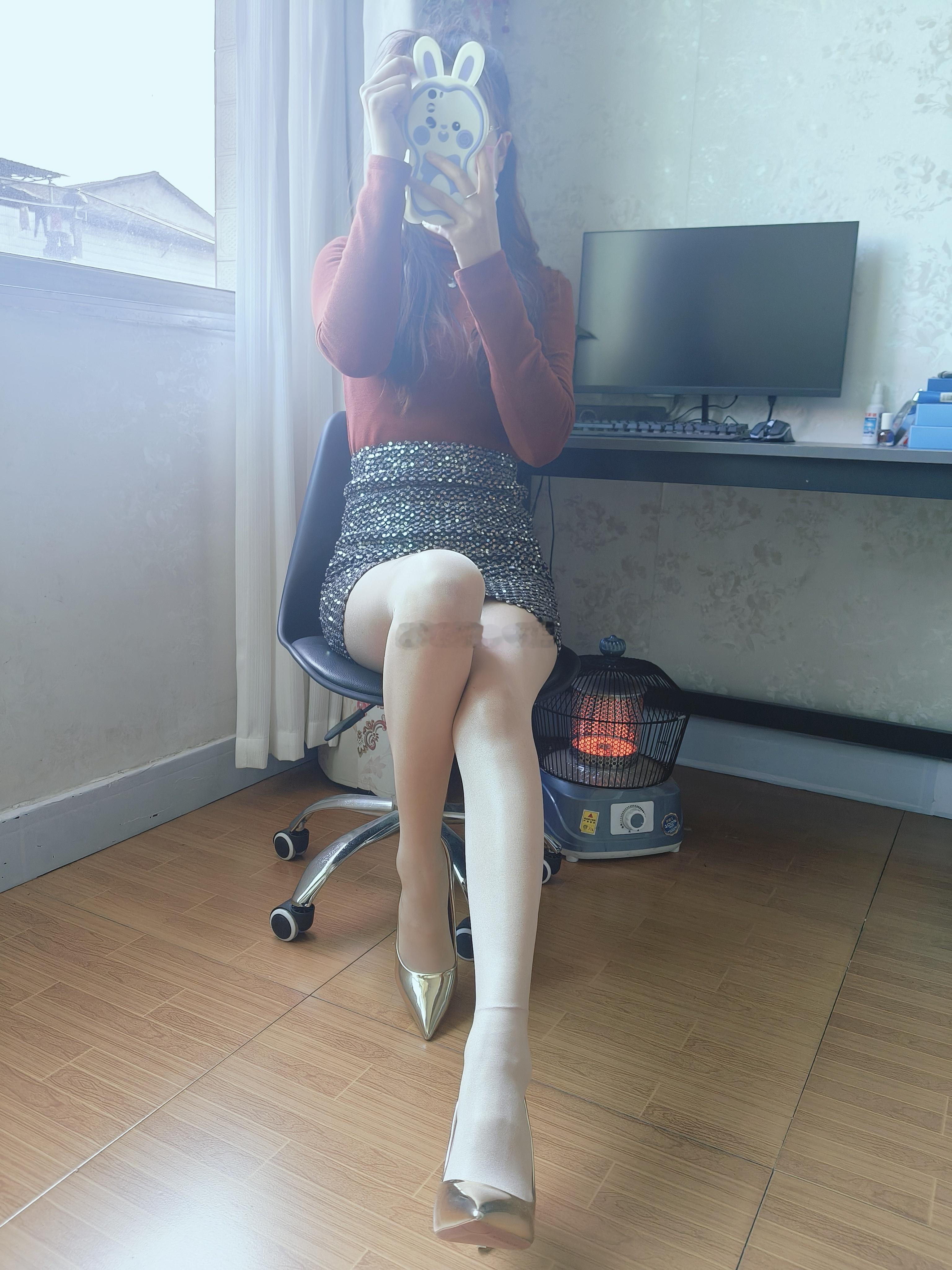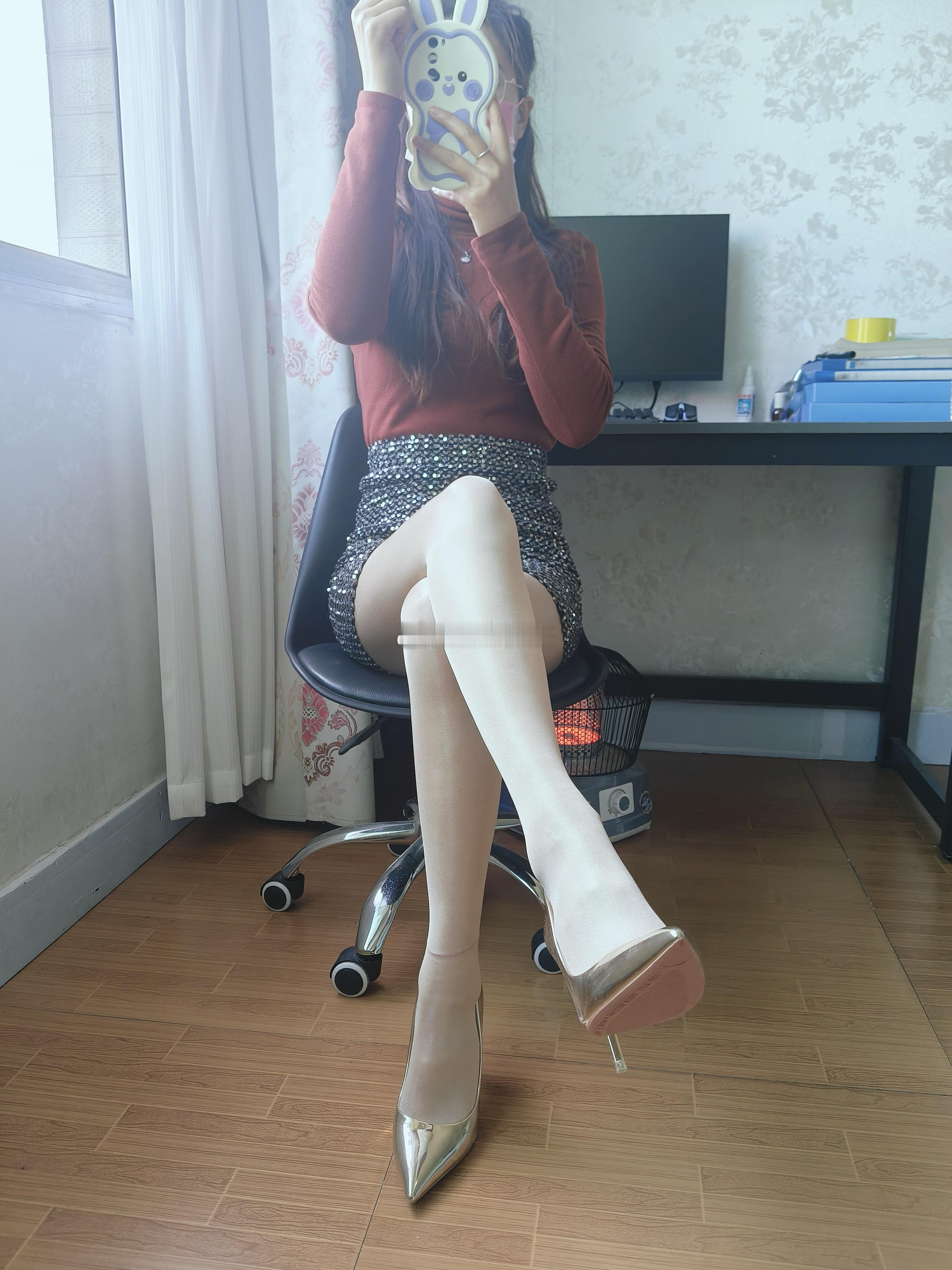 新裙子配丝袜高跟鞋,办公室的“腿玩年”女王!