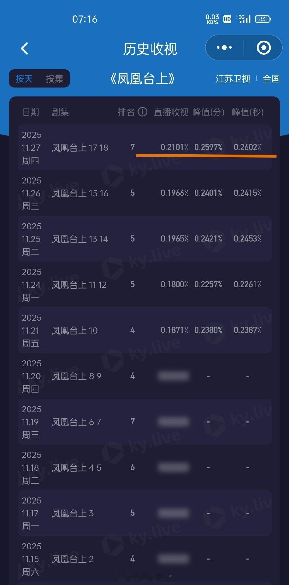 任嘉伦《凤凰台上》江苏卫视收视率连续3天环比增长👍