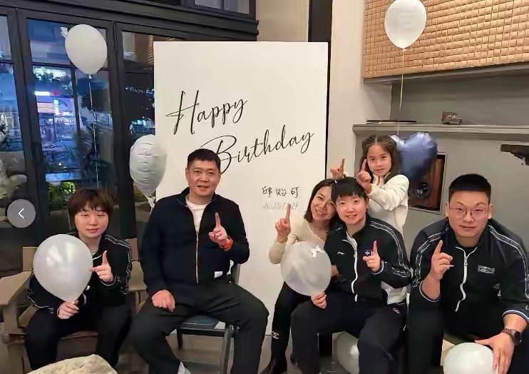 孙颖莎蒯曼拿气球为恩师邱贻可庆生!11月27日,邱贻可在社交网站晒出自己过生日与弟子孙颖莎、蒯曼的合照,照片中孙颖莎蒯曼手拿气球并配文:一年又一年大家好,加油!邱贴可在混团世界杯开赛前晒出这张图片真有深意,期望弟子们在成都喜气盈人取得好成绩!