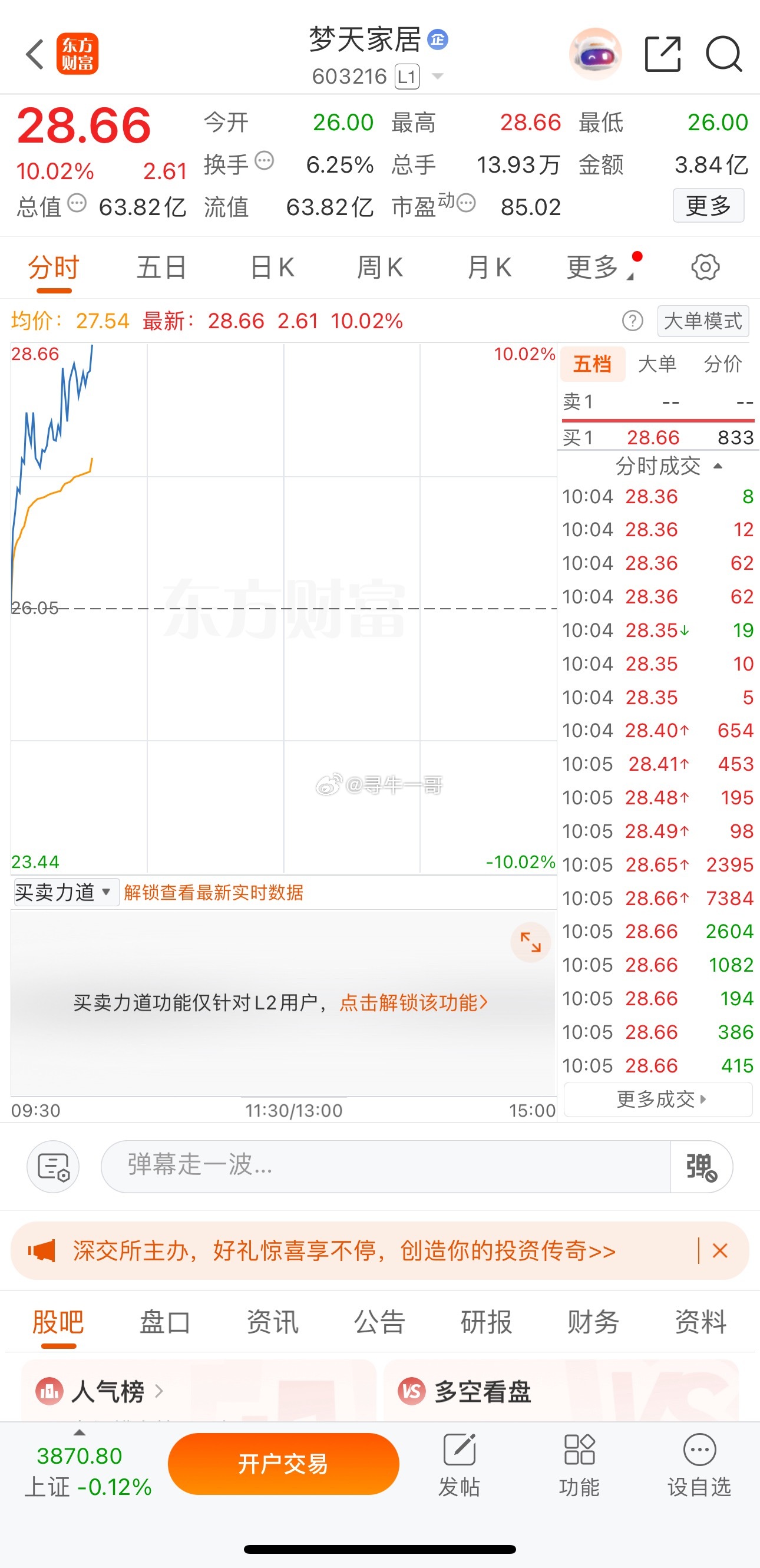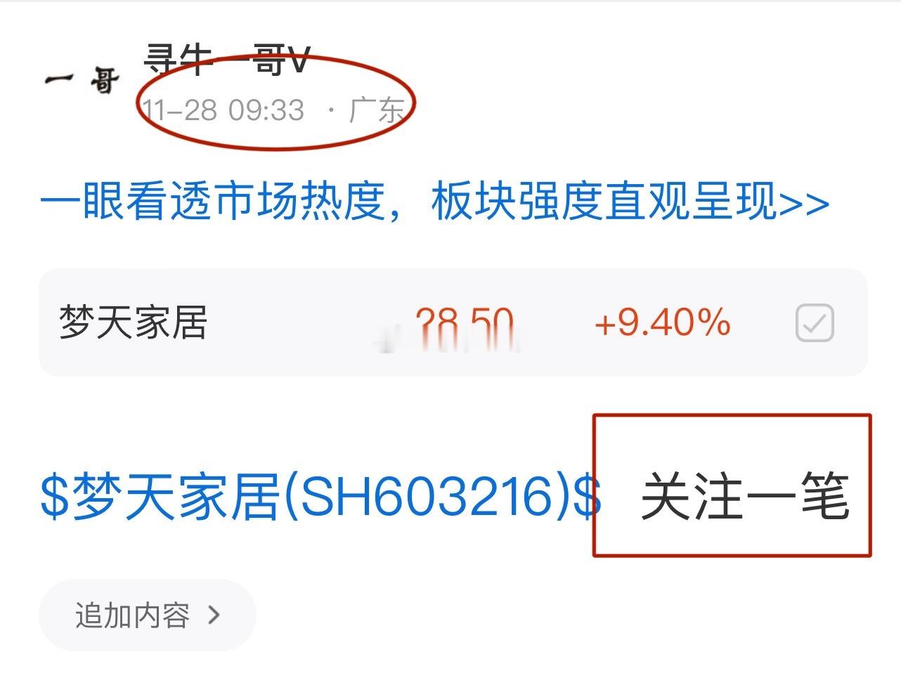 行情不是一天铸成的,投资也不是一天就能翻倍的,需要点滴去成长,让我们一起成长,让财富不断升值!早盘集合竞价推荐的梦天家居603216涨停板,实力有目共睹! 股海无涯,一哥与你同在!
