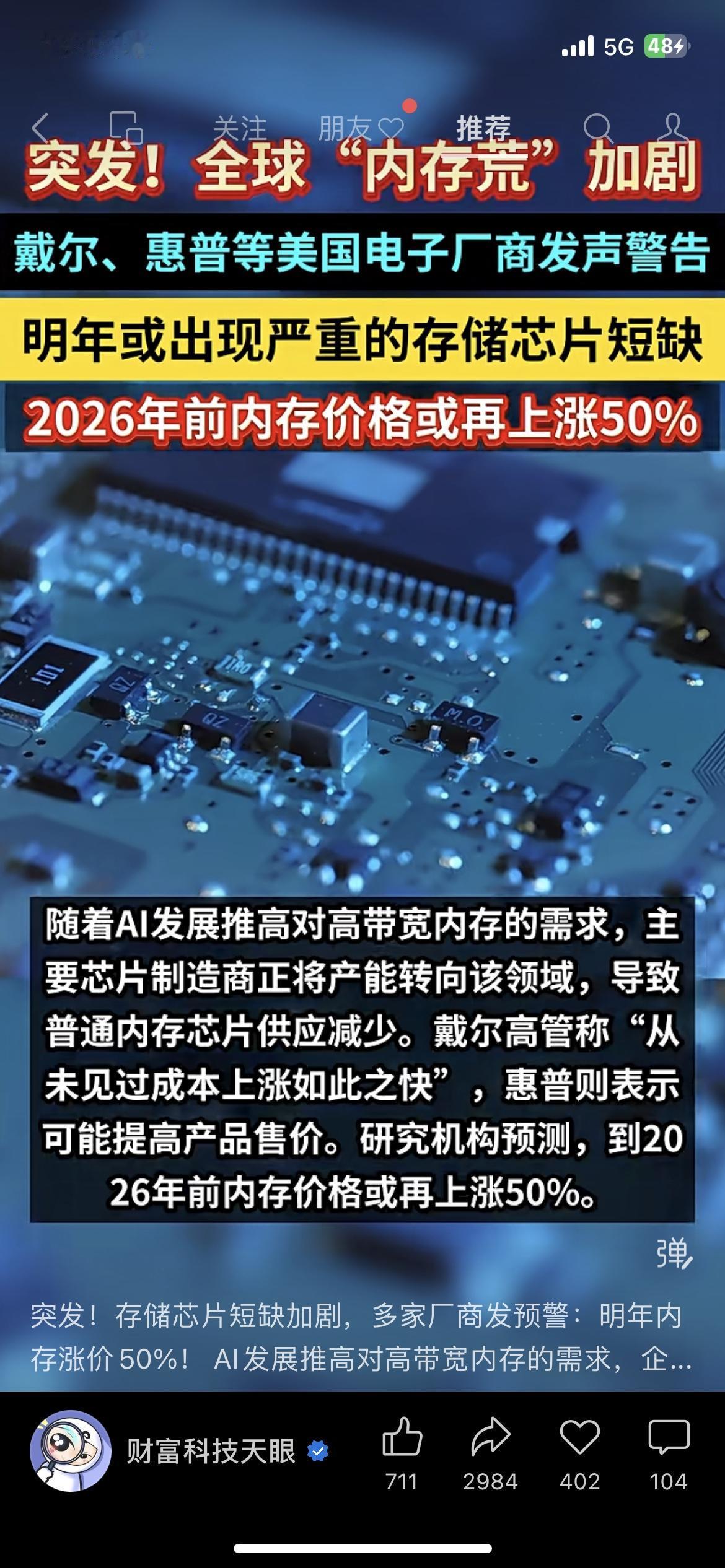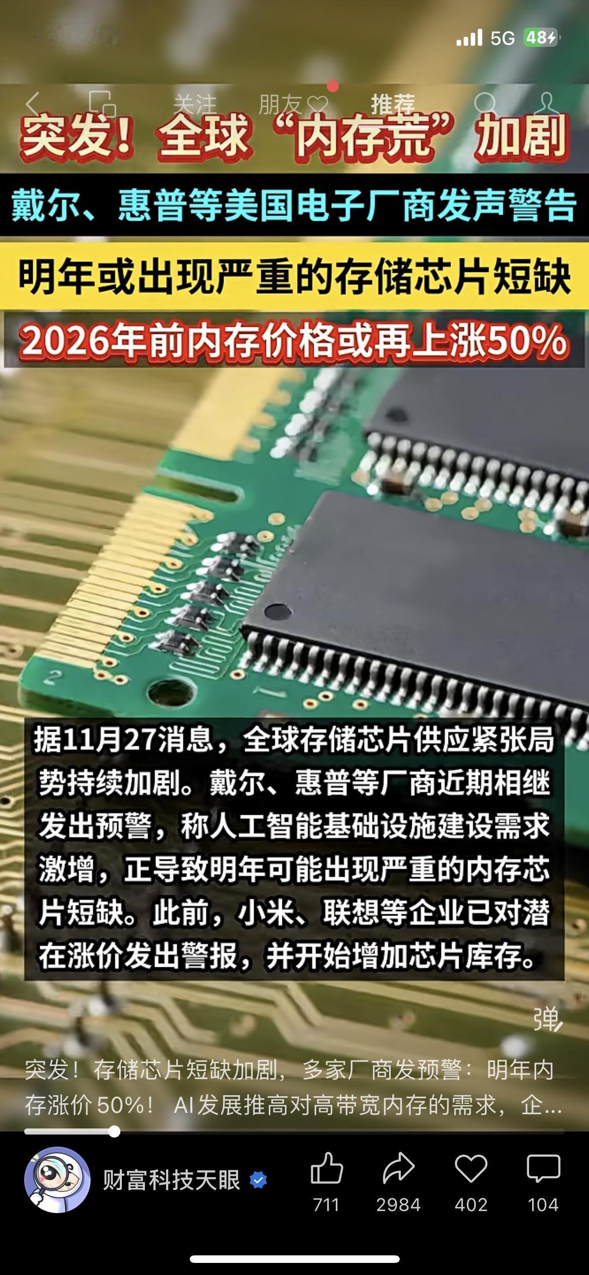 紧急提醒!内存要涨50%,换手机电脑得抓紧了! 刚看到戴尔、惠普的预警,明年存储芯片要短缺,2026年前内存价格可能涨50%!这意味着手机、电脑、硬盘都会涨价! 我本来想等双十二换笔记本,现在一看,要是涨价了得多花大几百甚至上千!身边做数码生意的朋友说,最近已经有厂家在偷偷涨价了。 你们最近有换电子设备的计划吗?是现在买还是再等等?