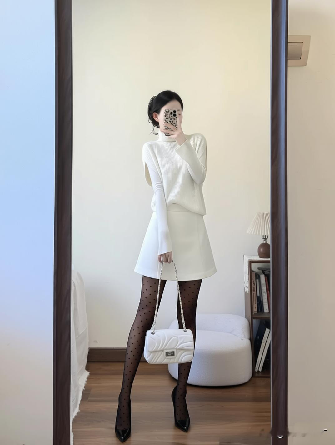 都市甜心穿搭指南,优雅白裙与米色毛衣的完美结合,尽显时尚与气质!💃?...