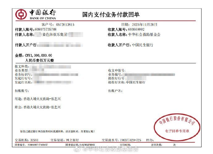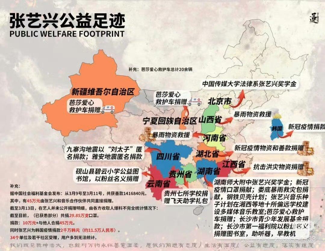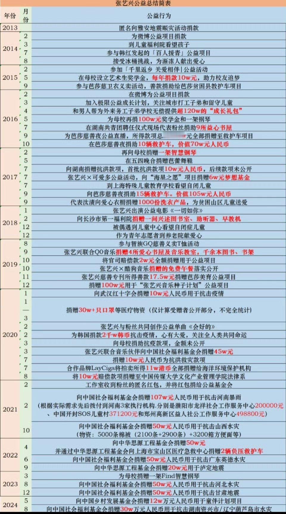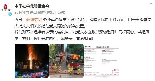 张艺兴捐赠香港100万元人民币,用以香港火灾之后的相关救助事宜。一直在默默做