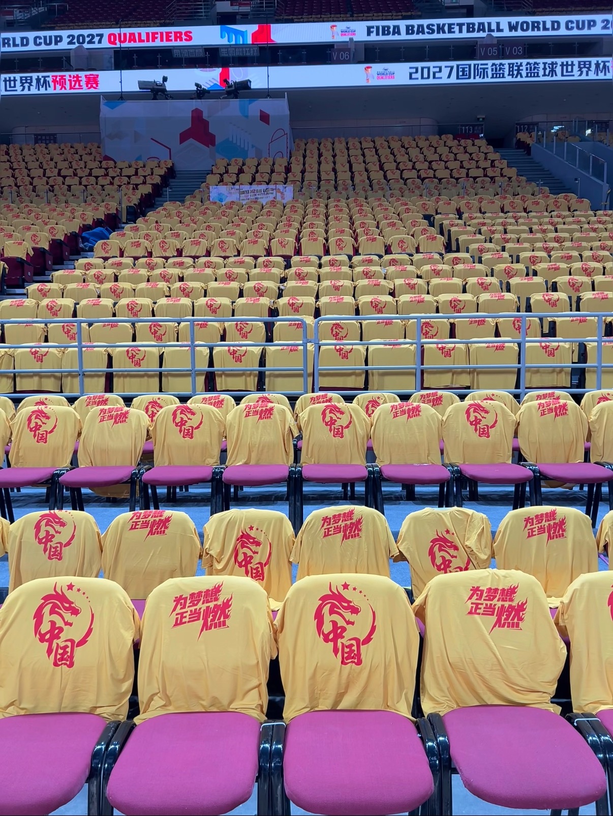 中国男篮主场已经是一片黄色的海洋~中国男篮主场化身黄色海洋